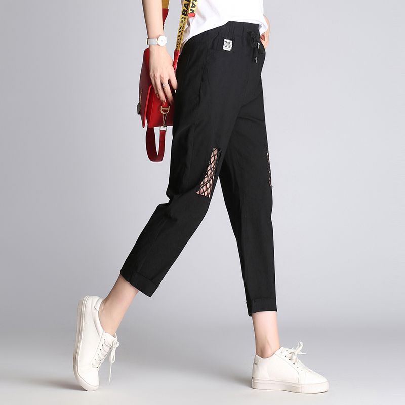 運動褲子女春夏破洞乞丐褲小腳哈倫九分褲高腰韓版寬松顯瘦休閑褲