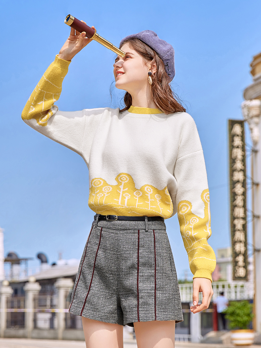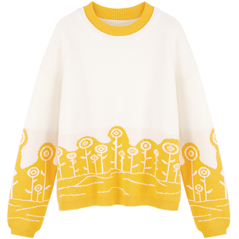 MG小象拼色針織衫女學生寬松套頭上衣2018新款甜美學院風冬季毛衣