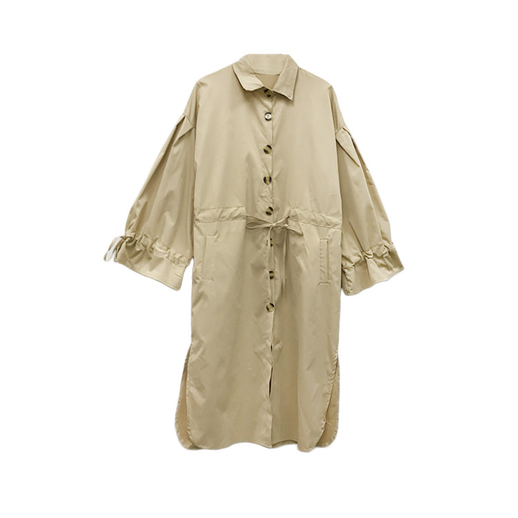 時尚袖口撞色翻邊設計純棉風衣女中長款韓版秋季2018新款修身外套
