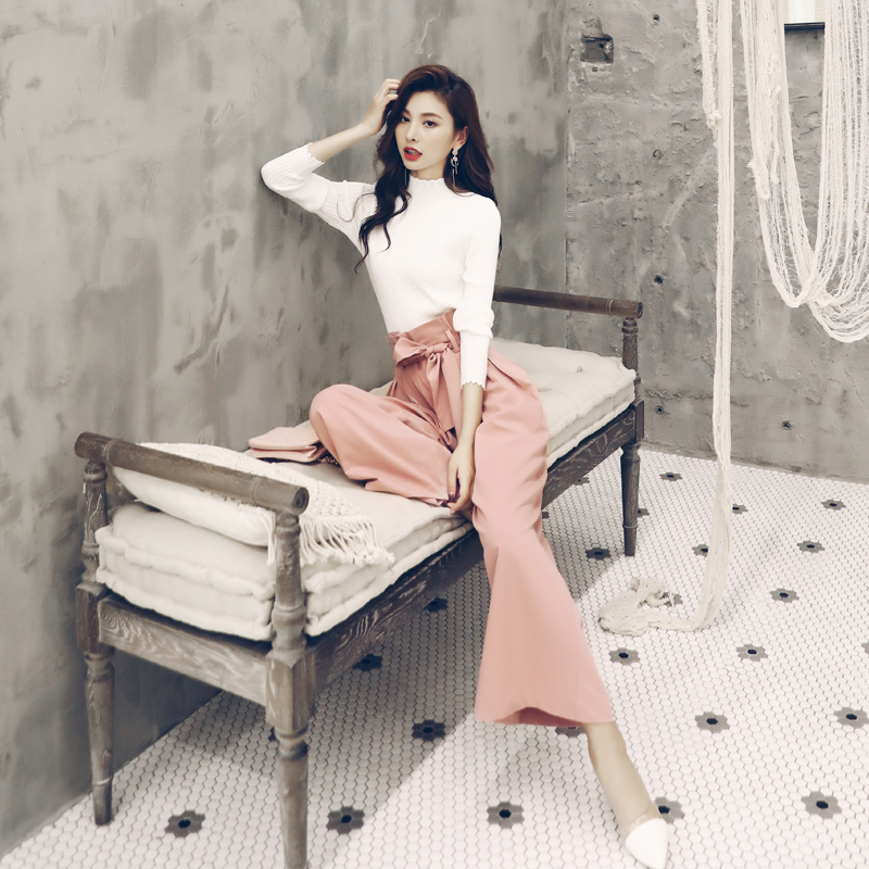 / 早秋季2018新款網紅氣質女神俏皮洋氣針織衫時尚闊腿褲兩件套裝女