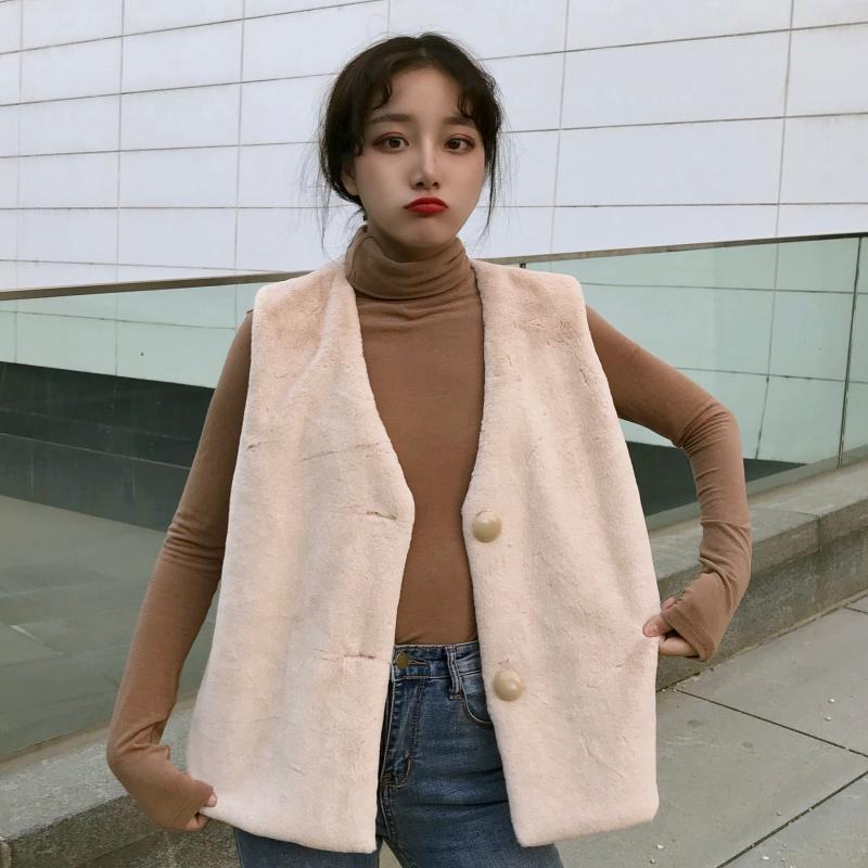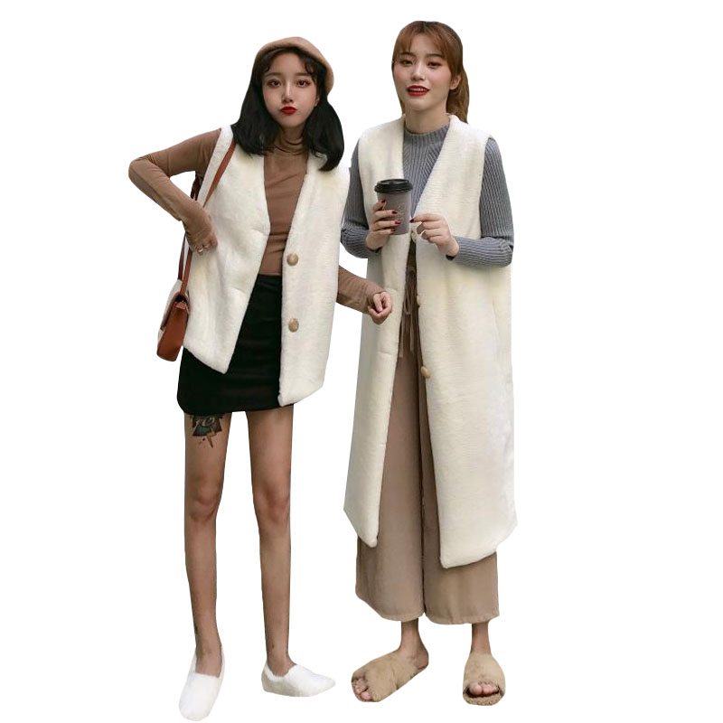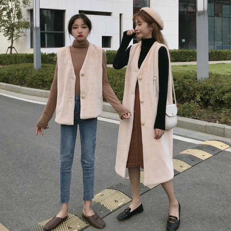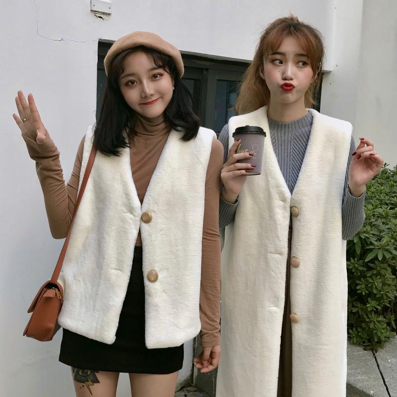 2018新款秋冬女裝韓版寬松深V領加厚毛絨馬甲背心中長款開衫外套