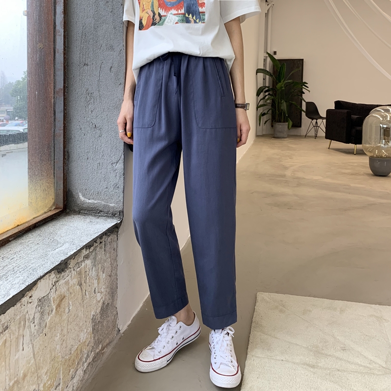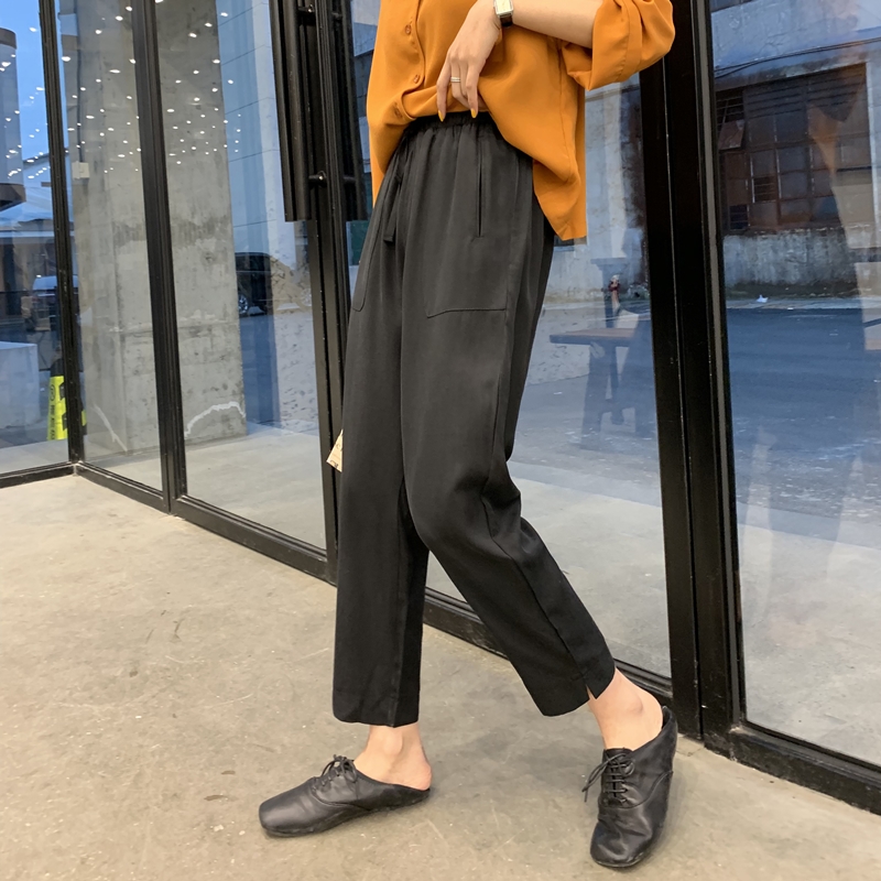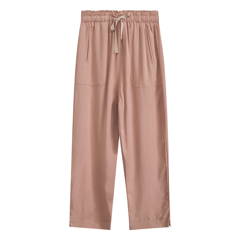 天絲抽繩直筒褲