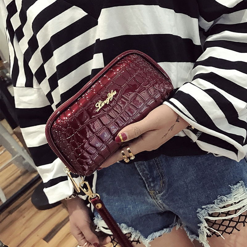 / 手拿包女新款韓版時尚漆皮手包簡約百搭手抓包女包鱷魚紋小包