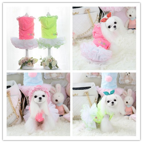 / 棒棒糖の熒光刺繡棉棉蓬蓬裙 寵物秋冬裝泰迪連衣裙狗狗