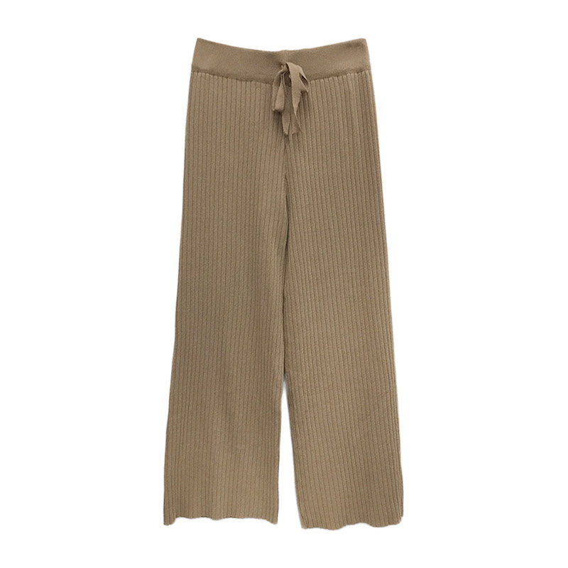 / 復古韓國chic風氣質溫柔純色坑條系帶高腰坑條闊腿針織褲直筒褲女