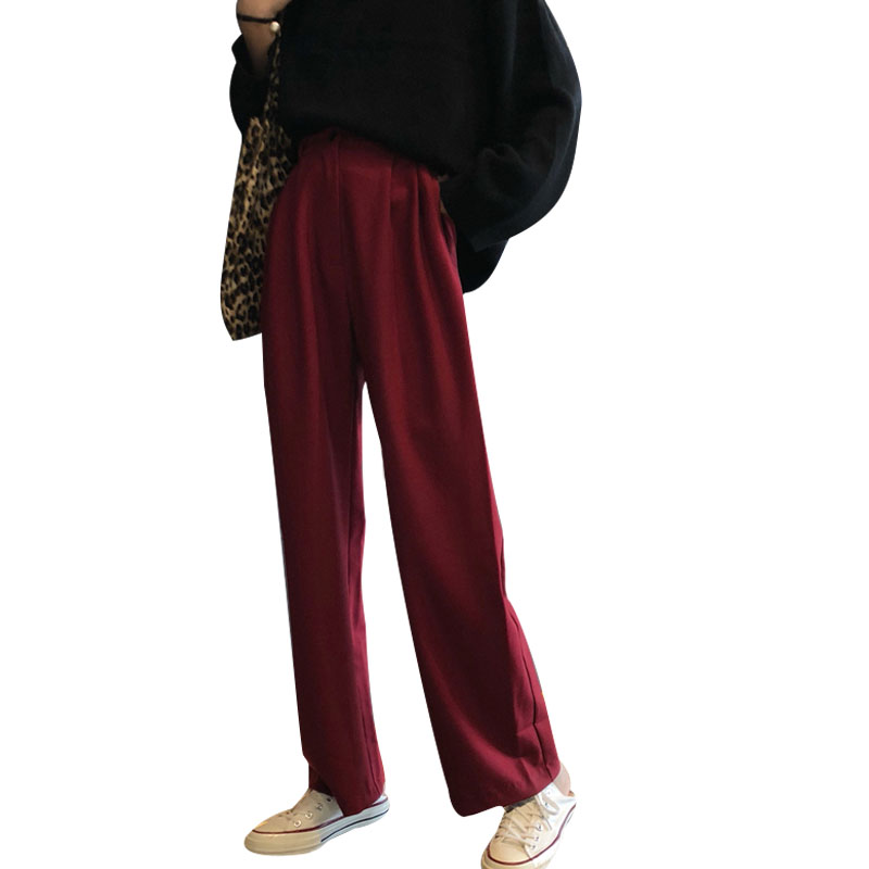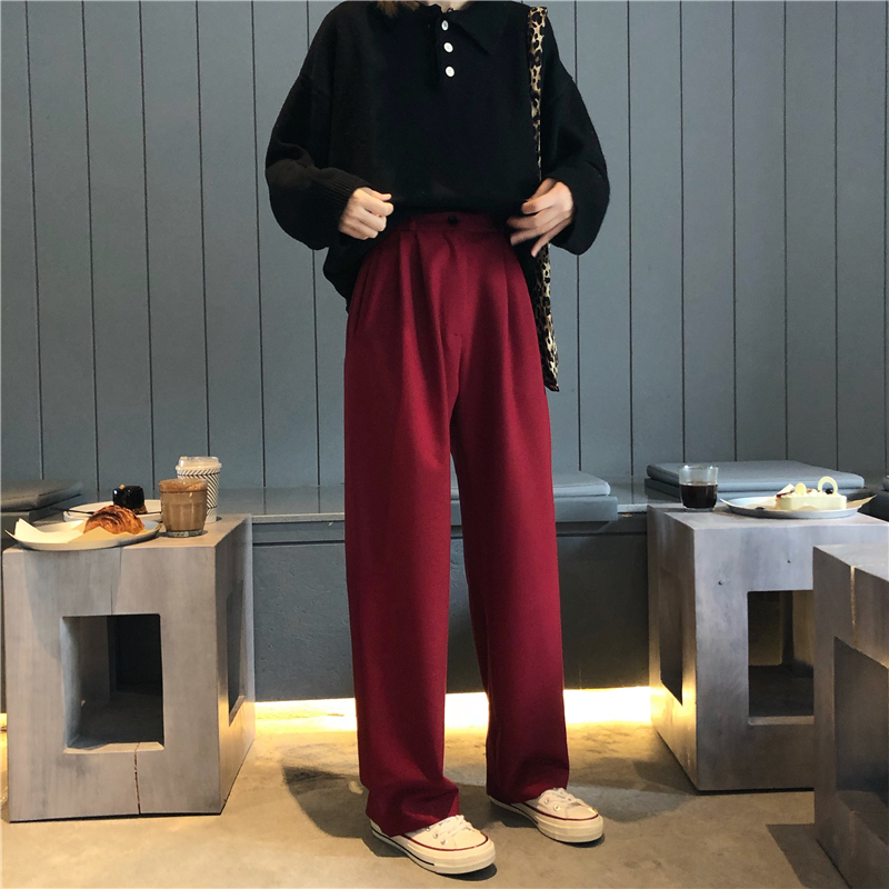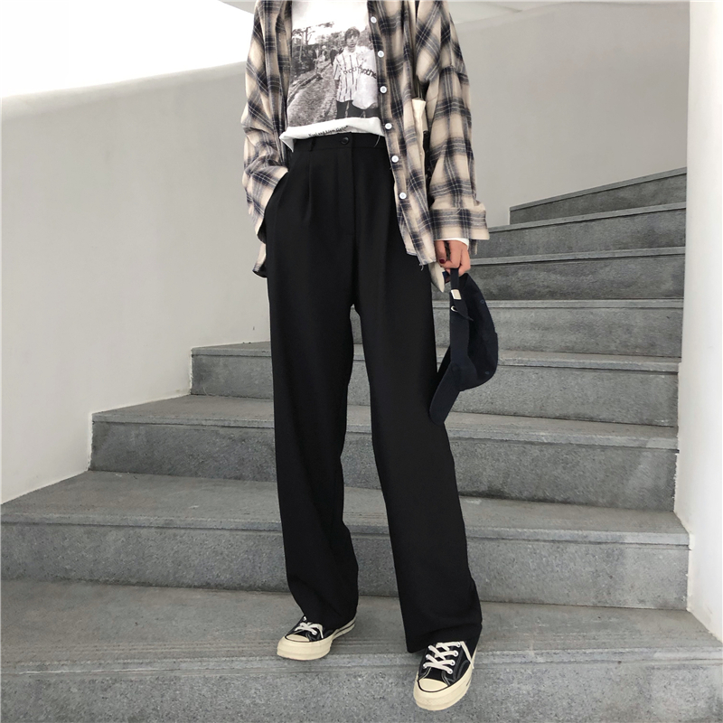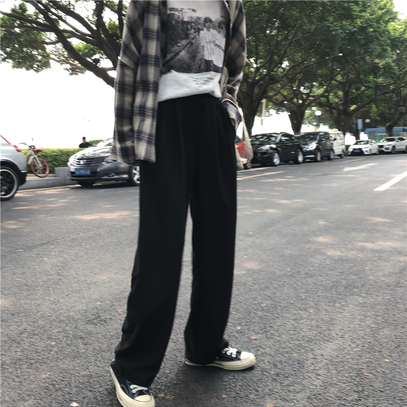 / 秋季女裝韓版寬松百搭抽褶闊腿褲休閑褲長褲松緊腰直筒褲學生褲子