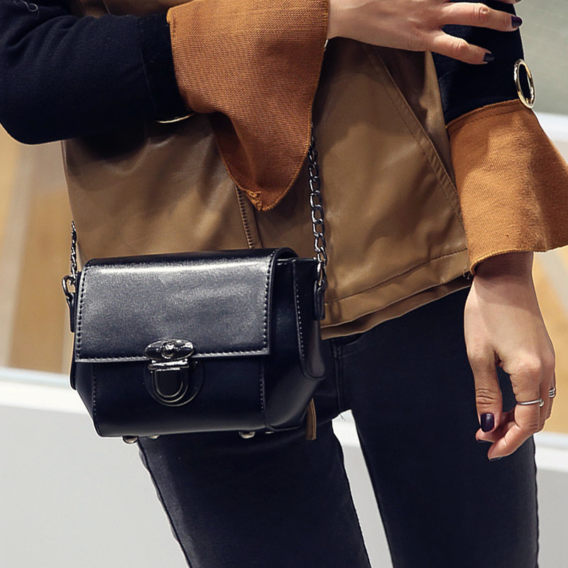 / 新款韓版復古迷你鏈條斜挎包女包時尚鎖扣簡約女士單肩包包潮