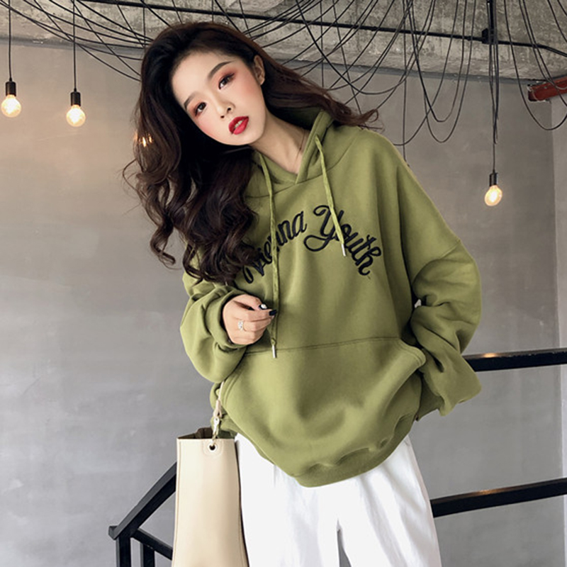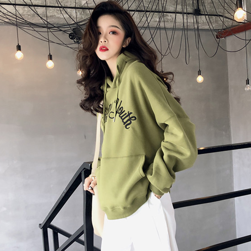 chic慵懶風字母刺繡衛衣女秋冬裝2018新款韓版百搭寬松連帽外套潮