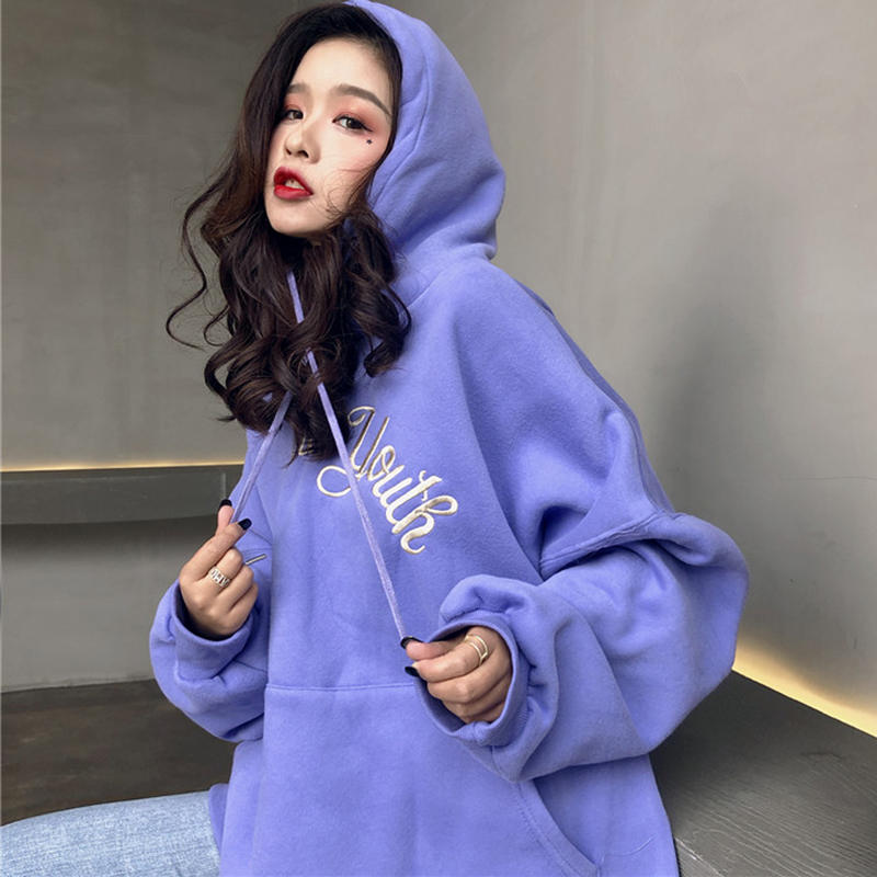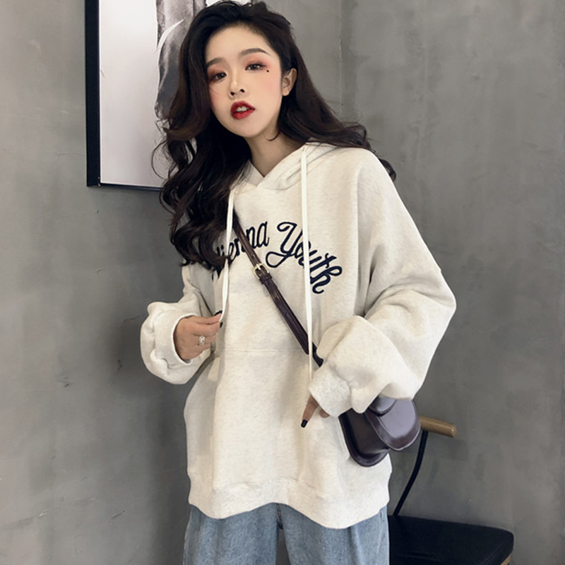 / chic慵懶風字母刺繡衛衣女秋冬裝2018新款韓版百搭寬松連帽外套潮