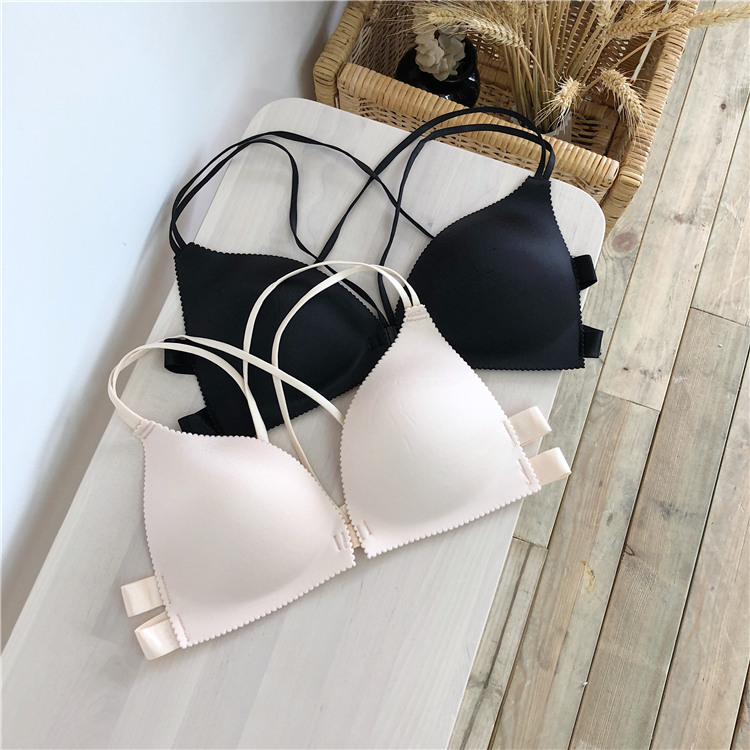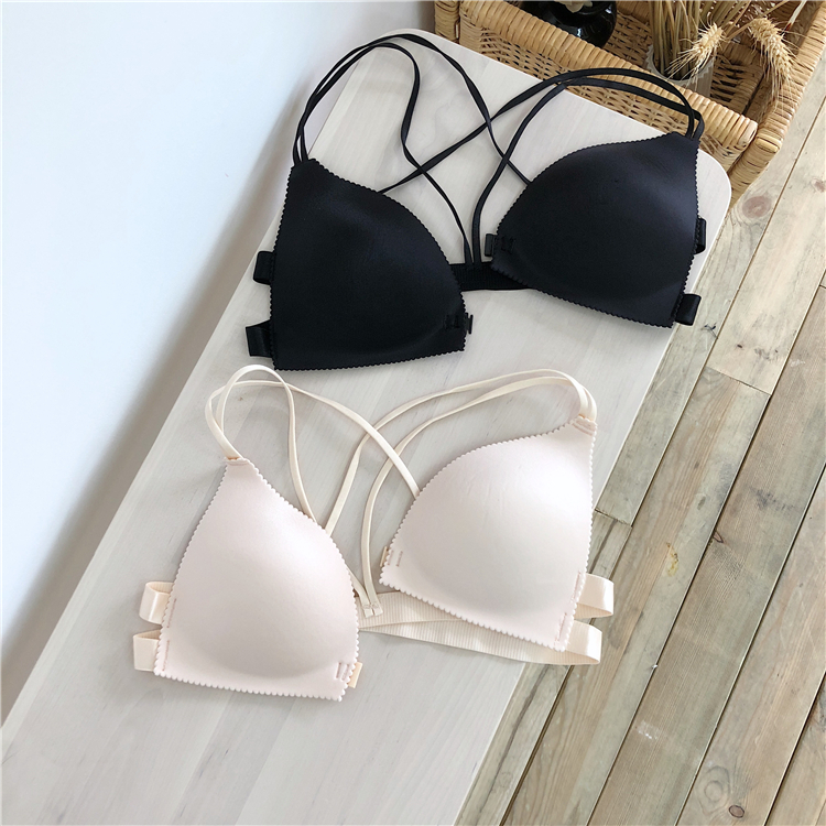 秋裝女2018新款前扣美背內衣上托無鋼圈少女性感無痕交叉聚攏文胸