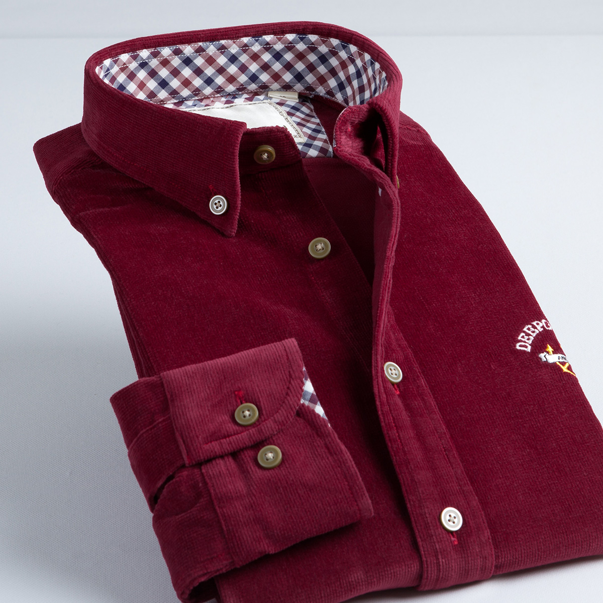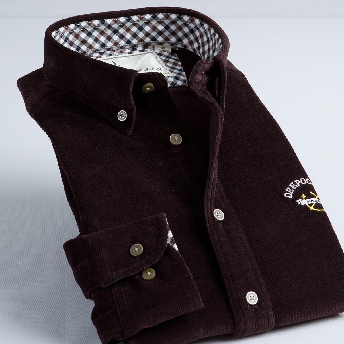深海加厚襯衣春裝 純色燈芯絨襯衫 男士長袖拼接襯衫保暖襯衣
