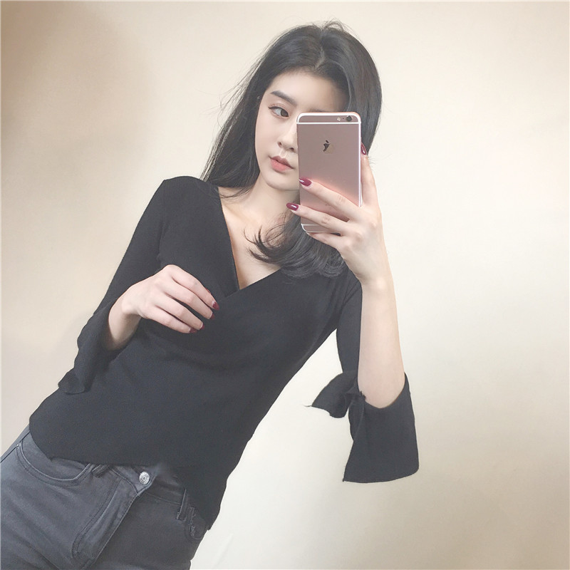 2018秋裝新款女交叉領性感V領毛衣韓版修身顯瘦氣質百搭上衣女潮