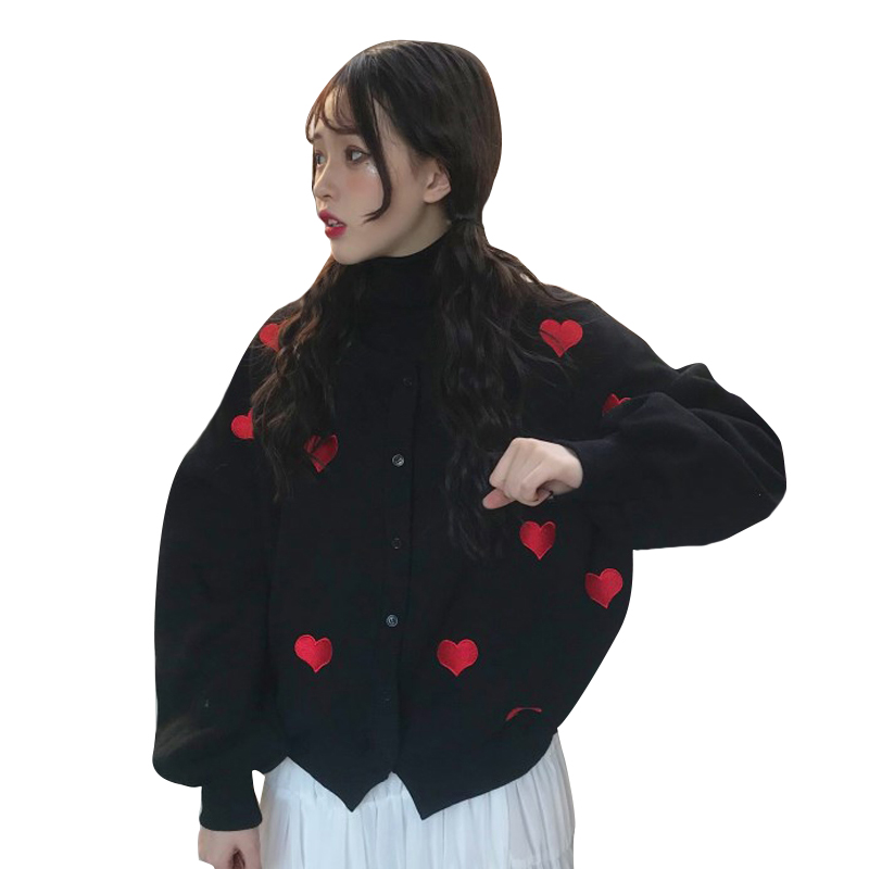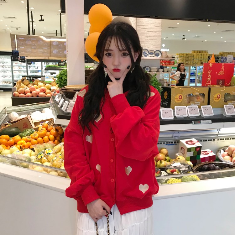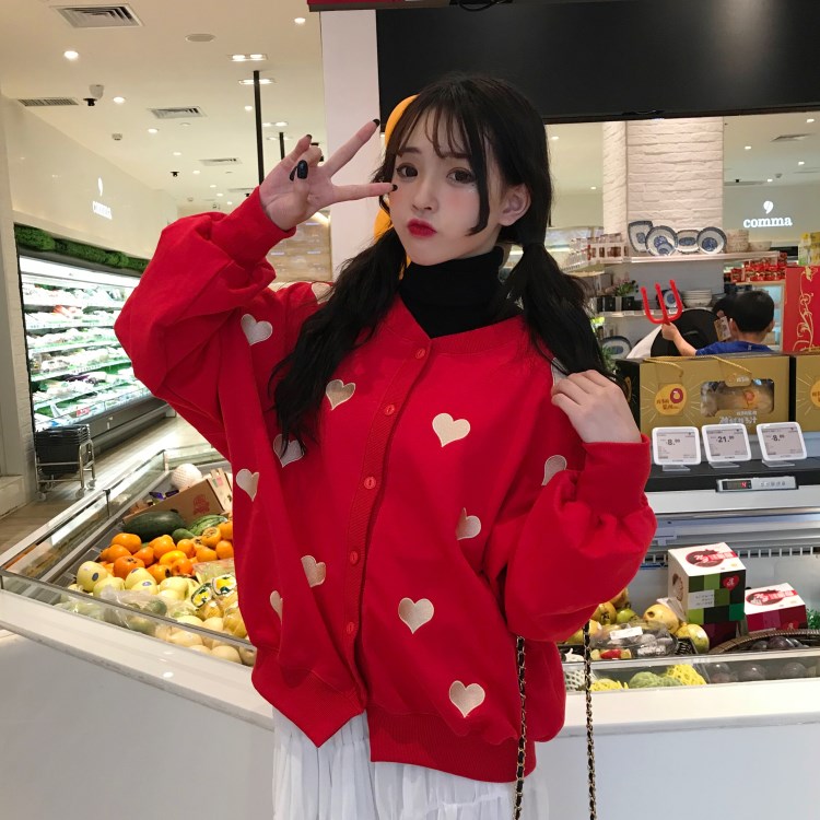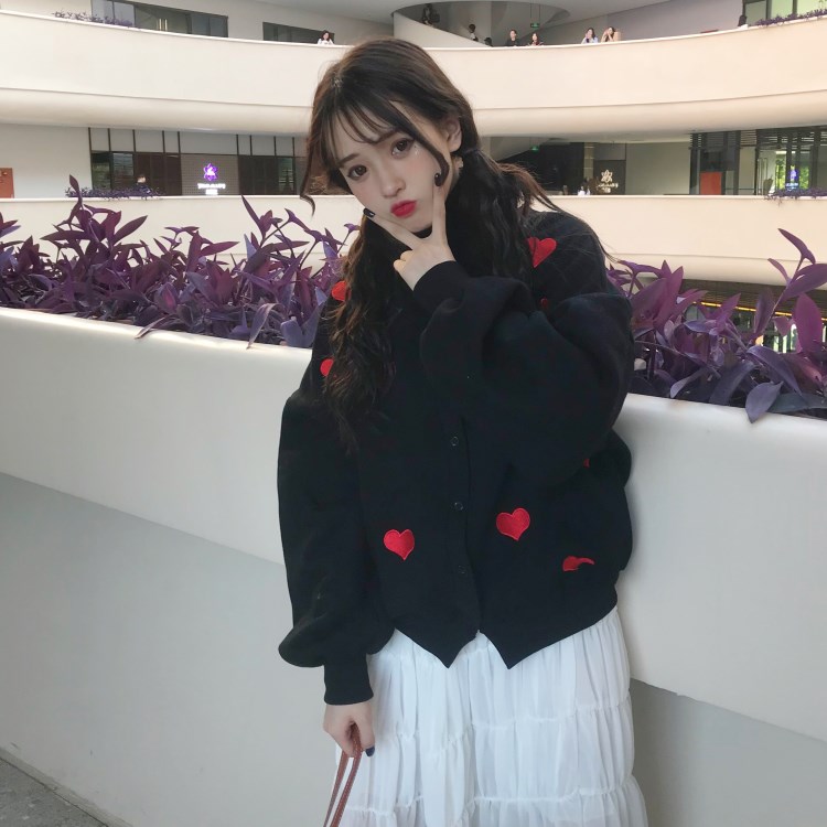 / 2018新款秋冬韓版慵懶風愛心刺繡寬松百搭衛衣開衫上衣外套學生女