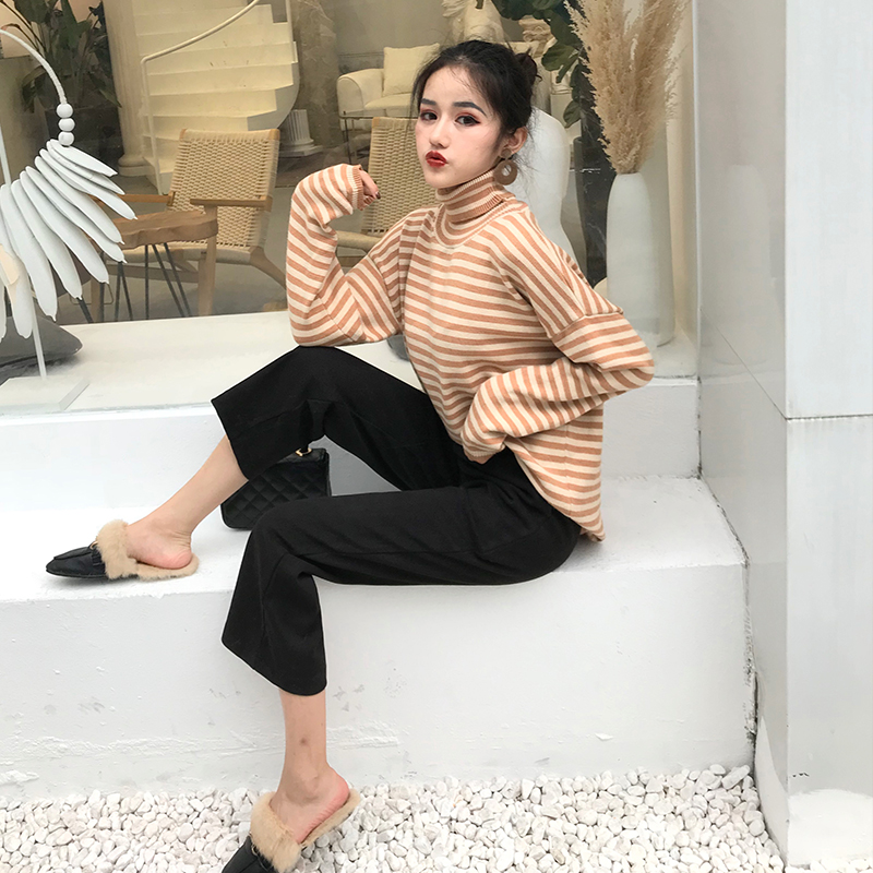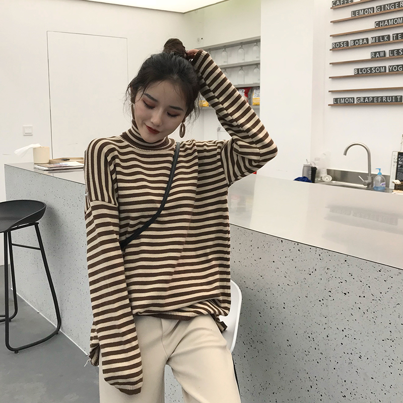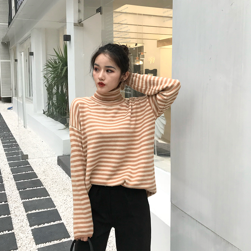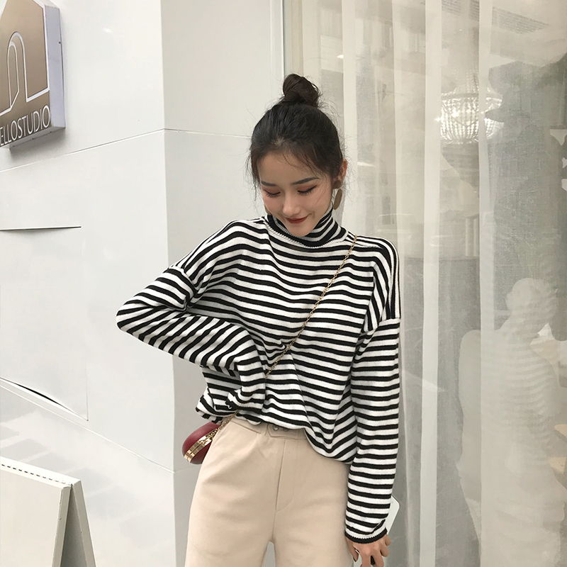 / 秋冬新款韓版加厚chic長袖條紋高領長袖上衣女氣質時尚女裝毛衣潮