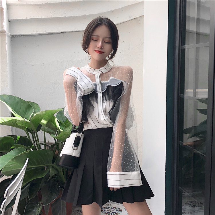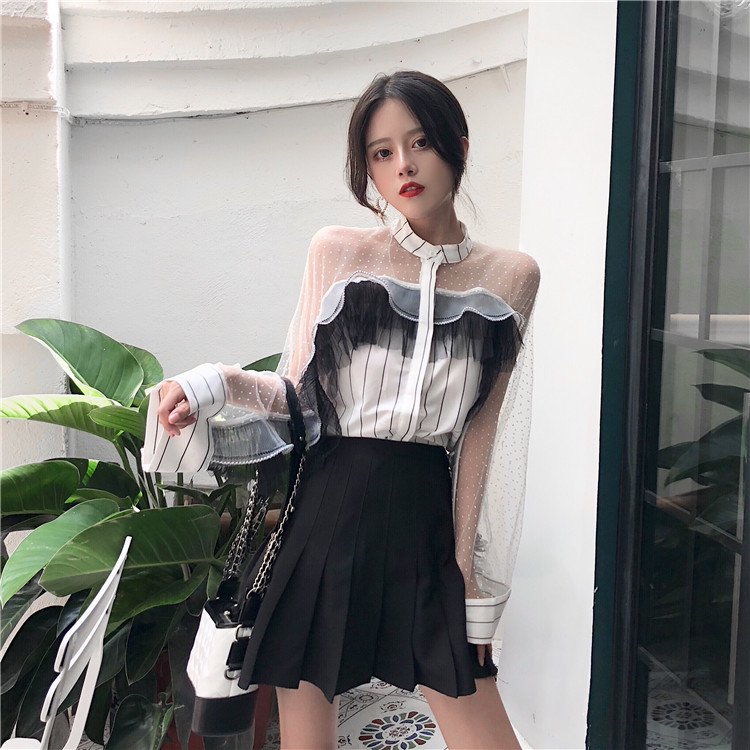 / 新款韓版秋季時尚蕾絲chic一字肩甜美小清新襯衫仙女氣質公主上衣