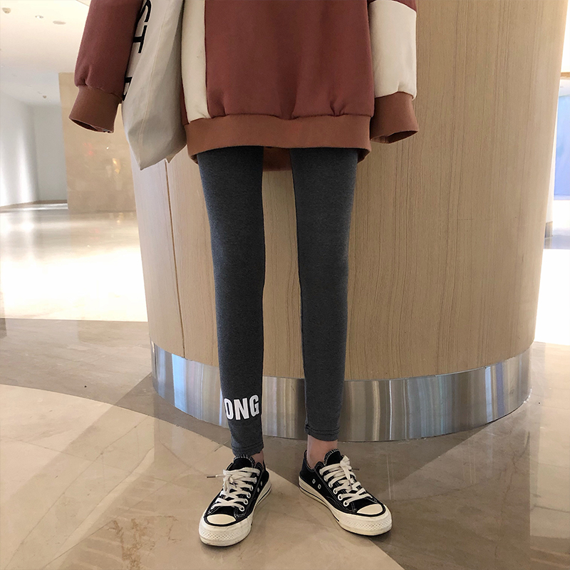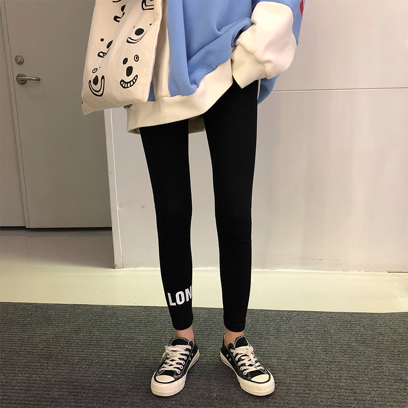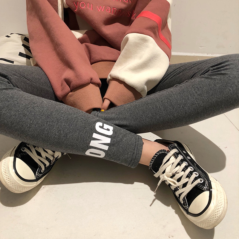 / 秋冬韓版修身美腿字母百搭外穿打底褲高腰顯瘦休閑褲緊身九分褲女
