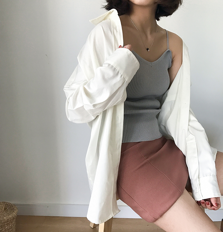 / 秋冬女裝韓版純色修身針織吊帶衫外穿v領小背心修身上衣打底衫潮