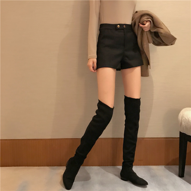 chic秋冬季2018新款褲子時尚絲絨雙拉鏈短褲純色百搭休閑闊腿褲女