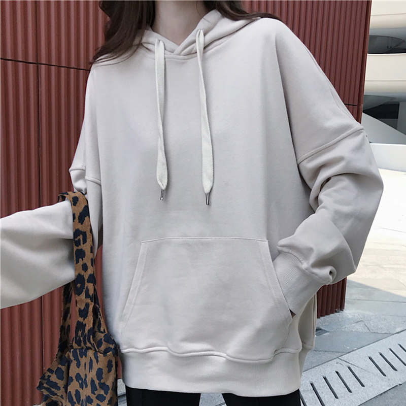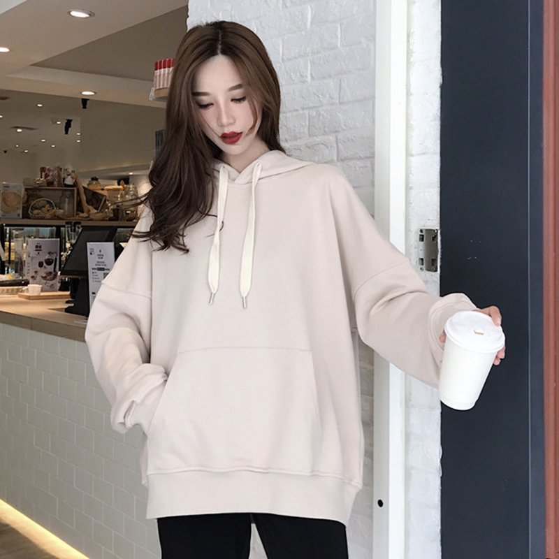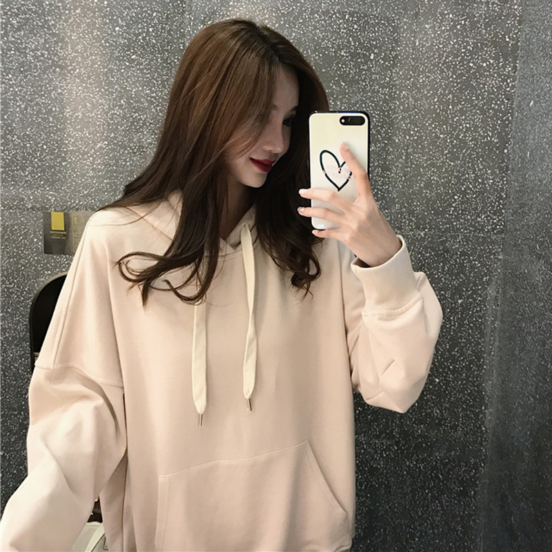 秋冬女裝2018新款慵懶風寬松加絨長袖上衣套頭連帽中長款衛衣外套