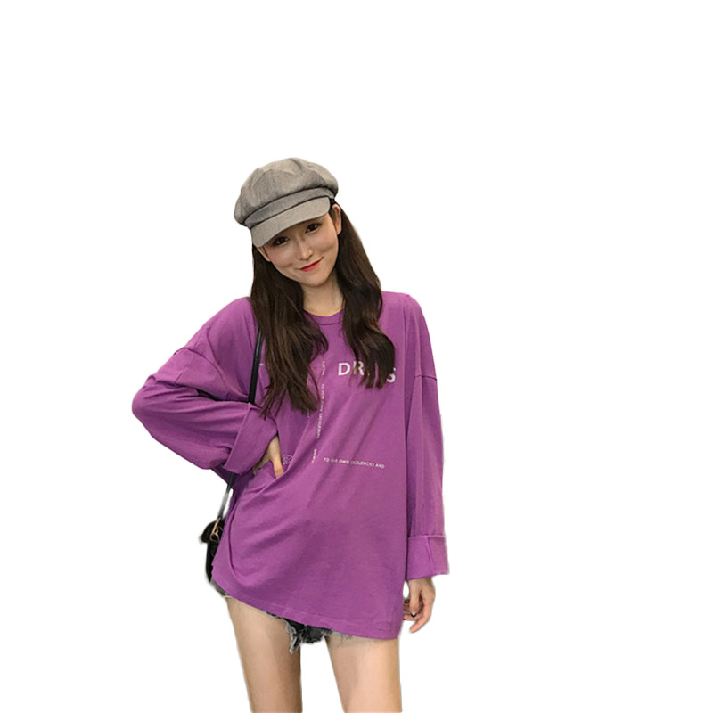 / 韓版時尚百搭秋季女裝長袖女上衣寬松顯瘦露背字母印花圓領T恤潮