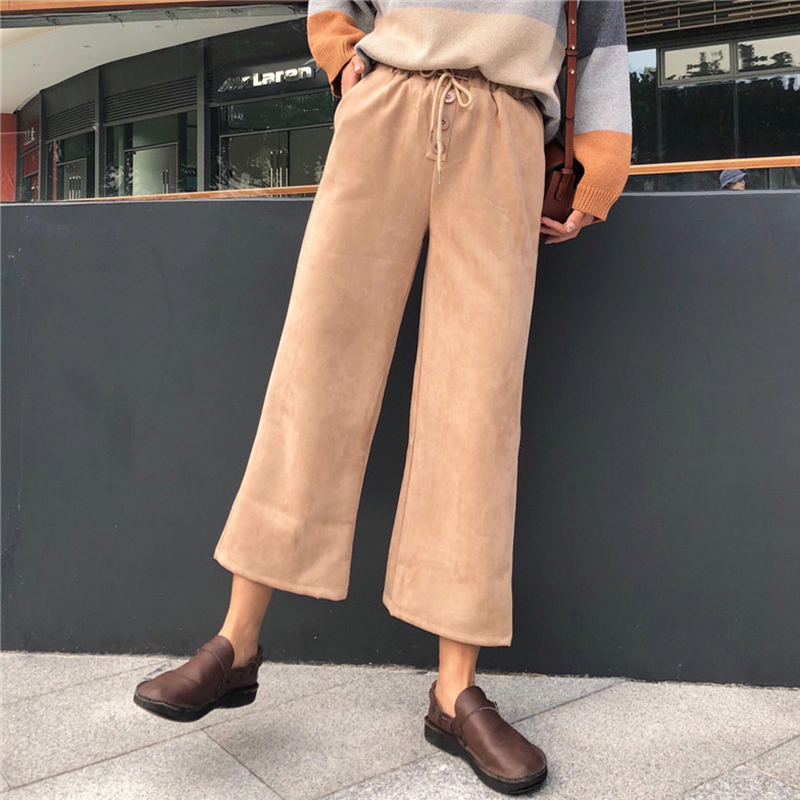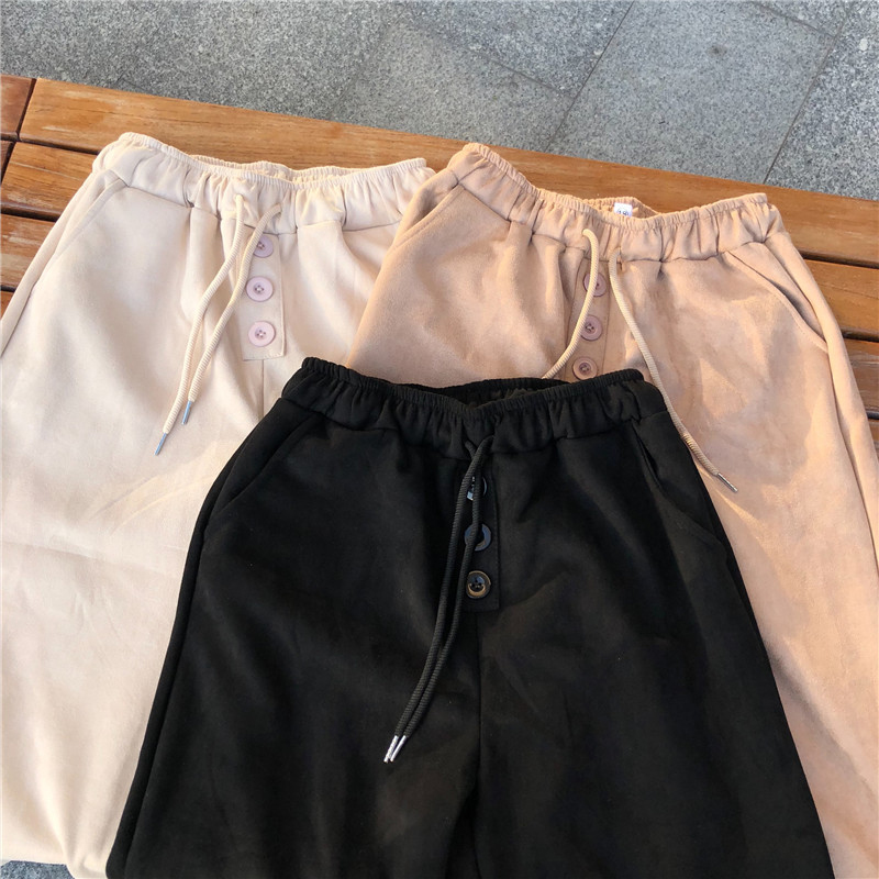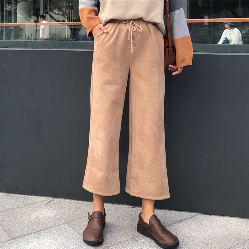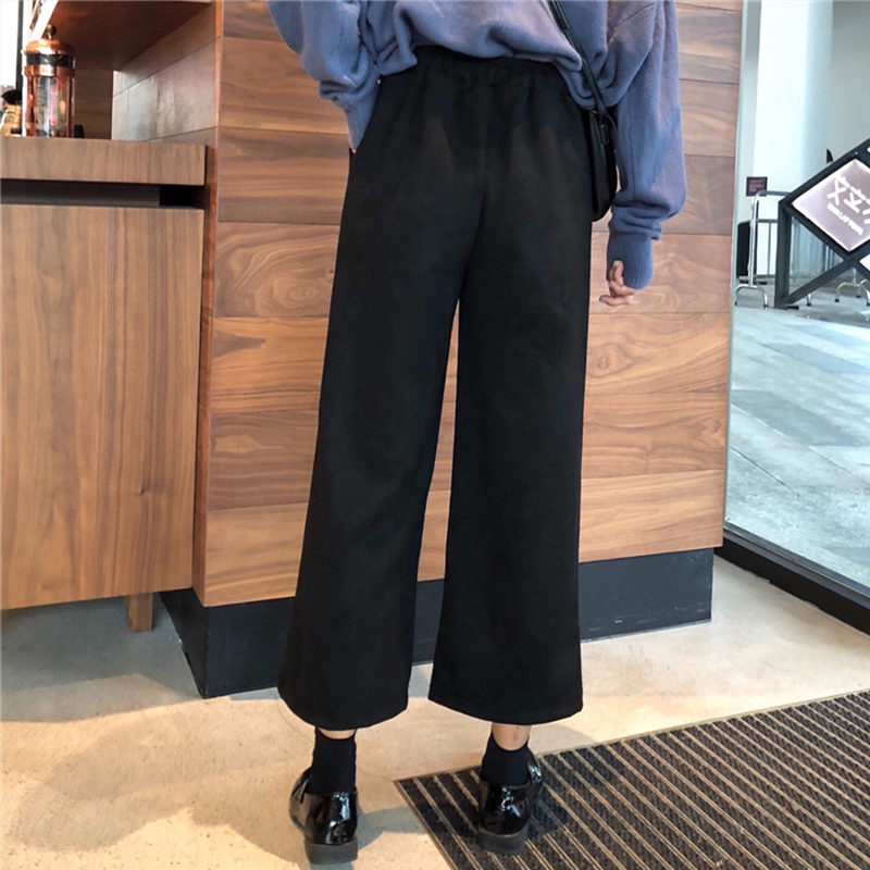 / 精神女生社會褲子冬裝2018新款韓版高腰鈕扣休閑褲寬松九分闊腿褲