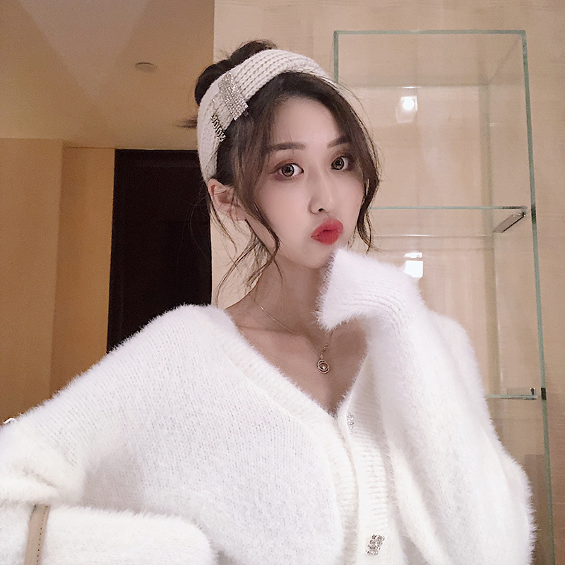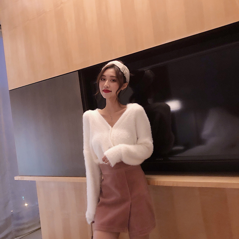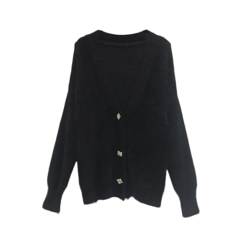 V領單排扣時尚毛絨慵懶風網紅毛衣女2018新款馬海毛針織開衫外套