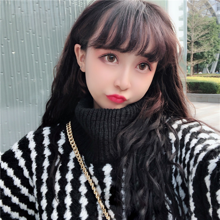 / 秋冬韓版中長款慵懶風寬松條紋加厚加粗套頭高領毛衣針織衫外套女