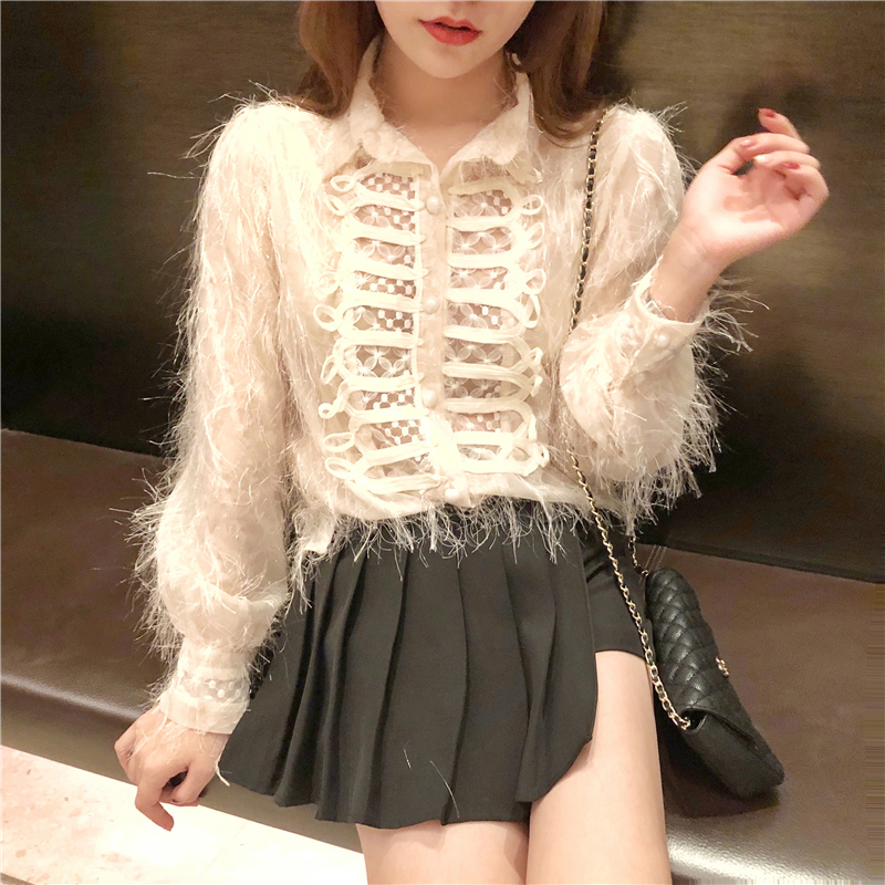 / 復古軟妹長袖襯衫女秋冬裝新款寬松中長款上衣小清新慵懶白色襯衣