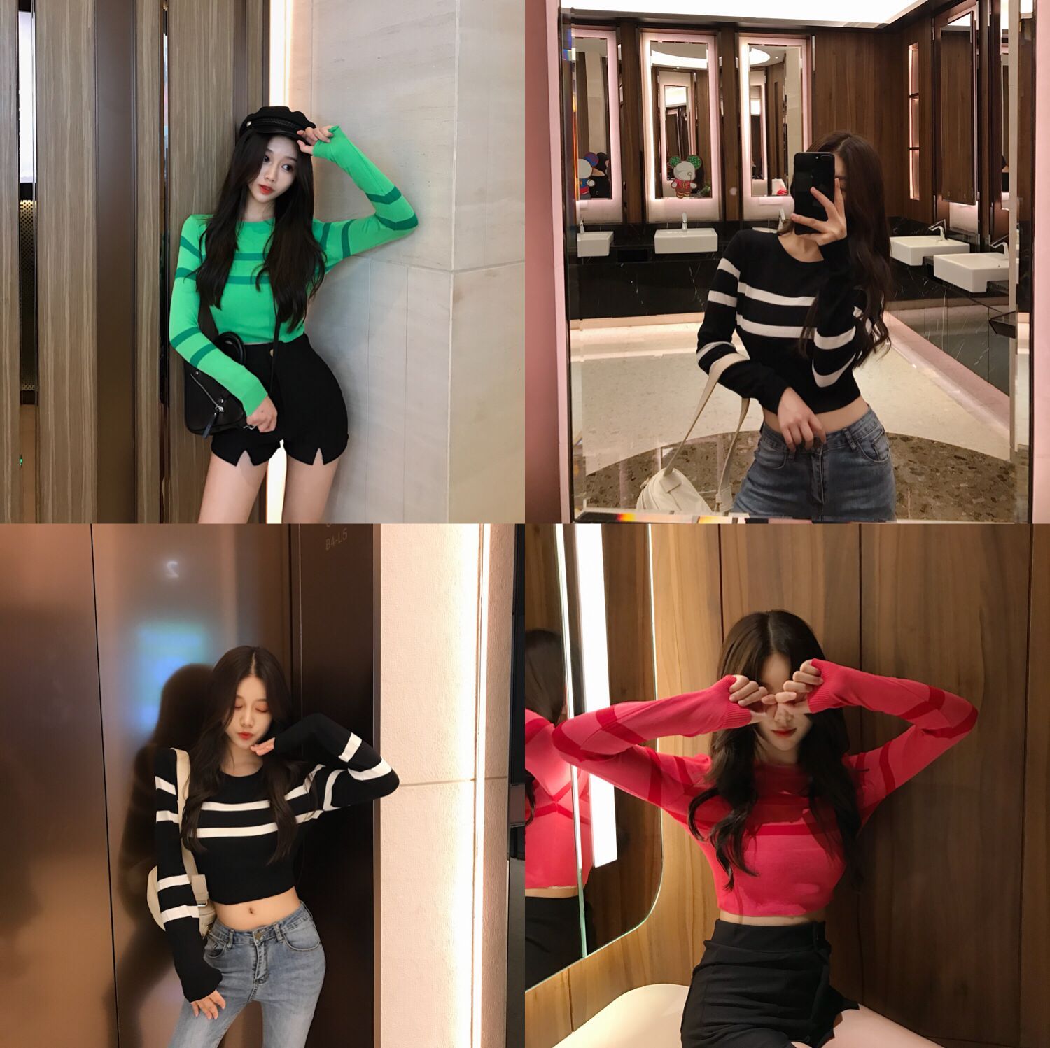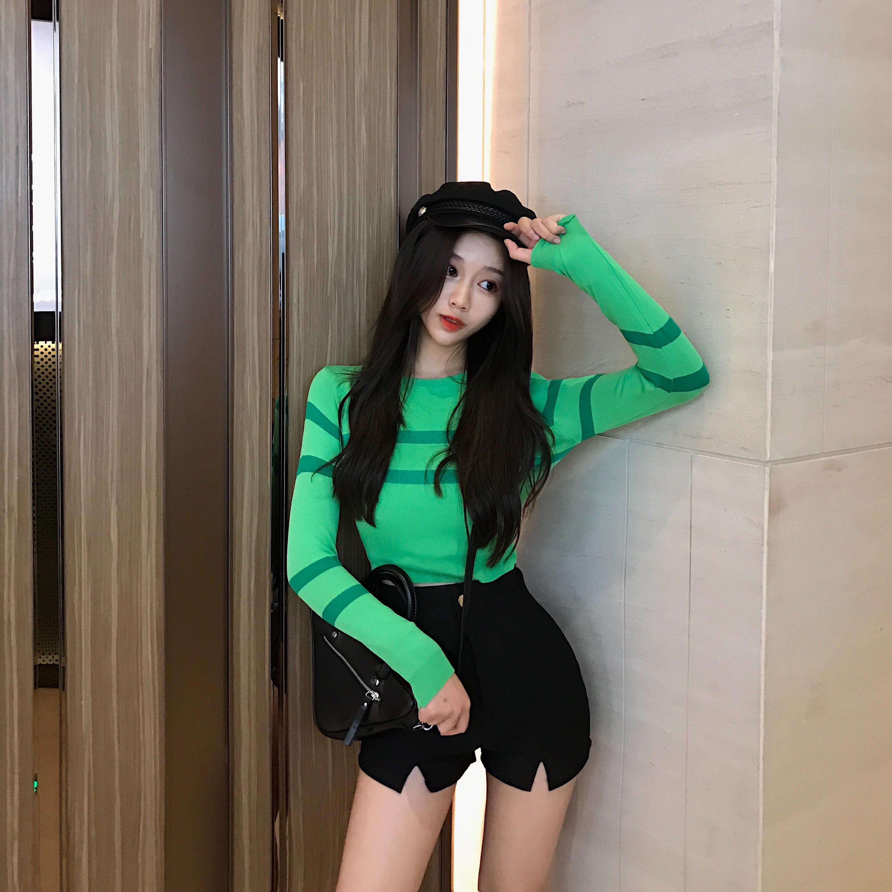 / 2018新款韓版上衣女chic百搭修身長袖秋季短款針織衫毛衣打底衫潮