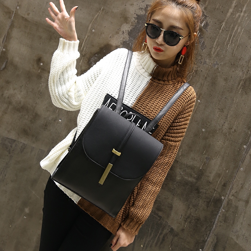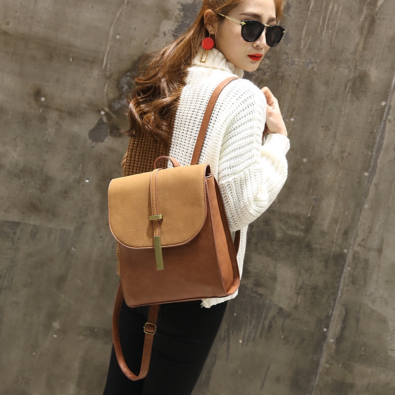 新款日韓版磨砂雙肩包女簡約復古學院風休閑背包學生書包包潮