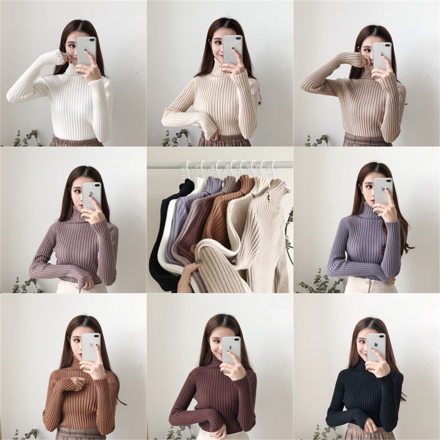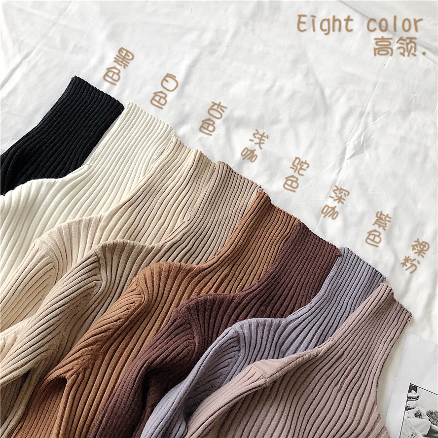 / 秋冬女裝韓版修身顯瘦坑條高領毛衣純色網紅套頭打底衫針織衫上衣