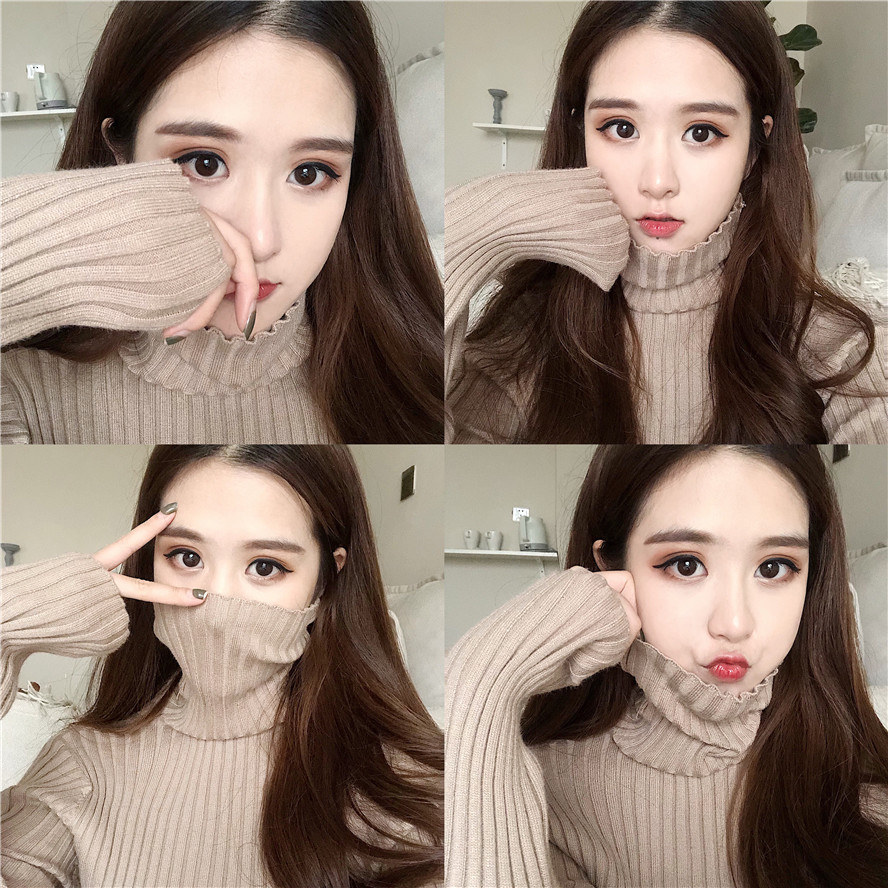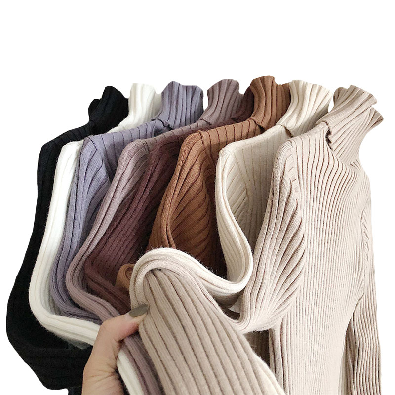 秋冬女裝韓版修身顯瘦坑條高領毛衣純色網紅套頭打底衫針織衫上衣