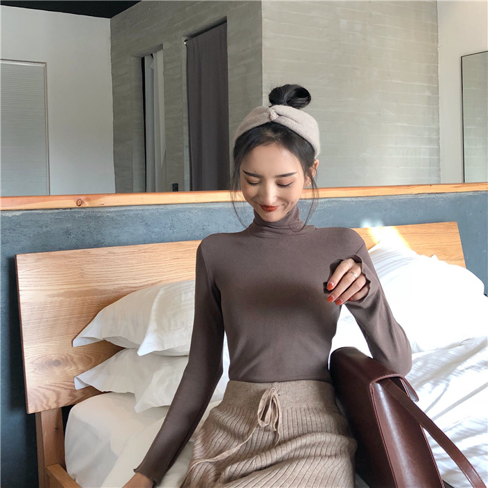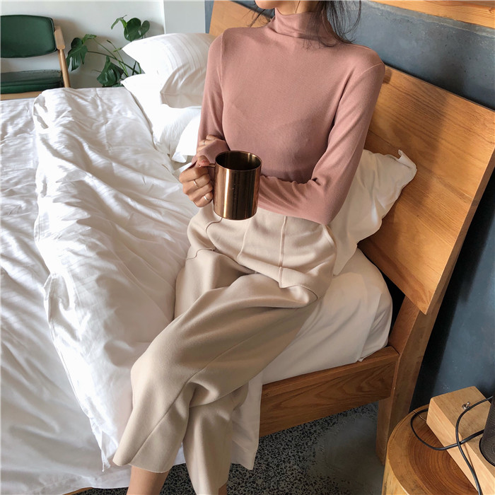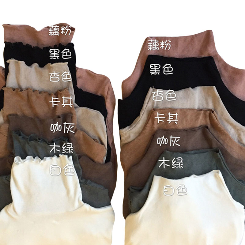 / 秋季韓版復古純色螺紋修身顯瘦高領套頭長袖打底衫T恤上衣學生女
