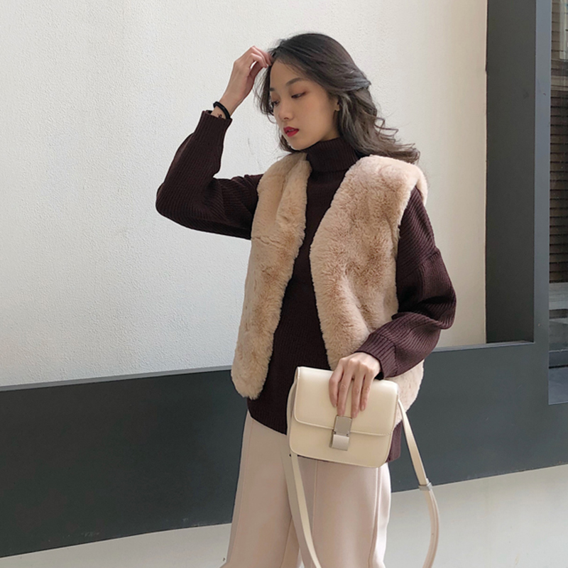 時尚毛絨馬甲女秋冬裝2018新款韓版寬松V領坎肩外套學生短款上衣