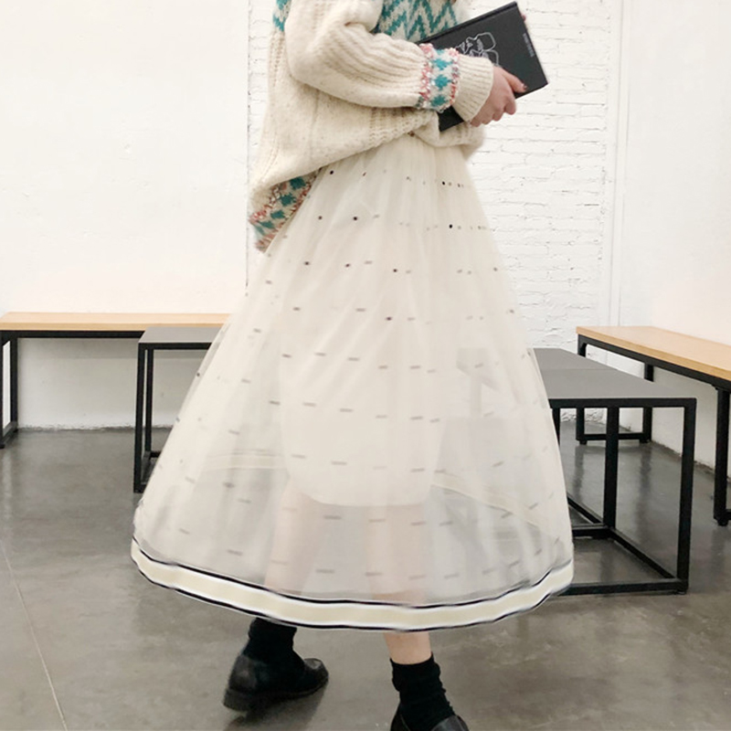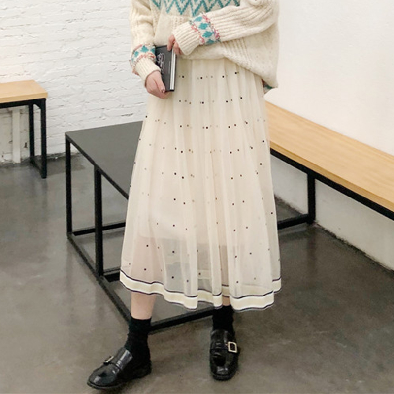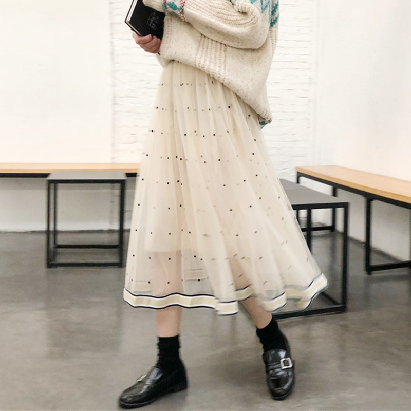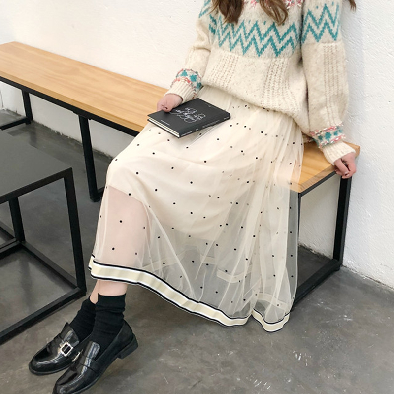 高腰顯瘦半身裙子秋冬女裝2018新款韓版復古波點網紗裙學生A字裙