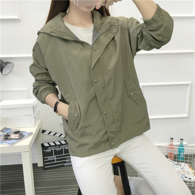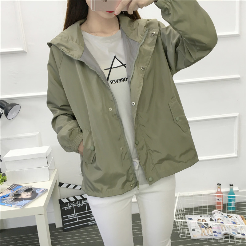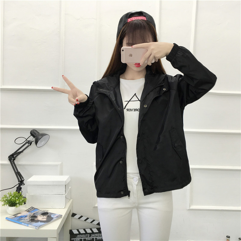 秋季外套女長袖短款春秋韓版學生寬松顯瘦連帽休閑短外套開衫風衣