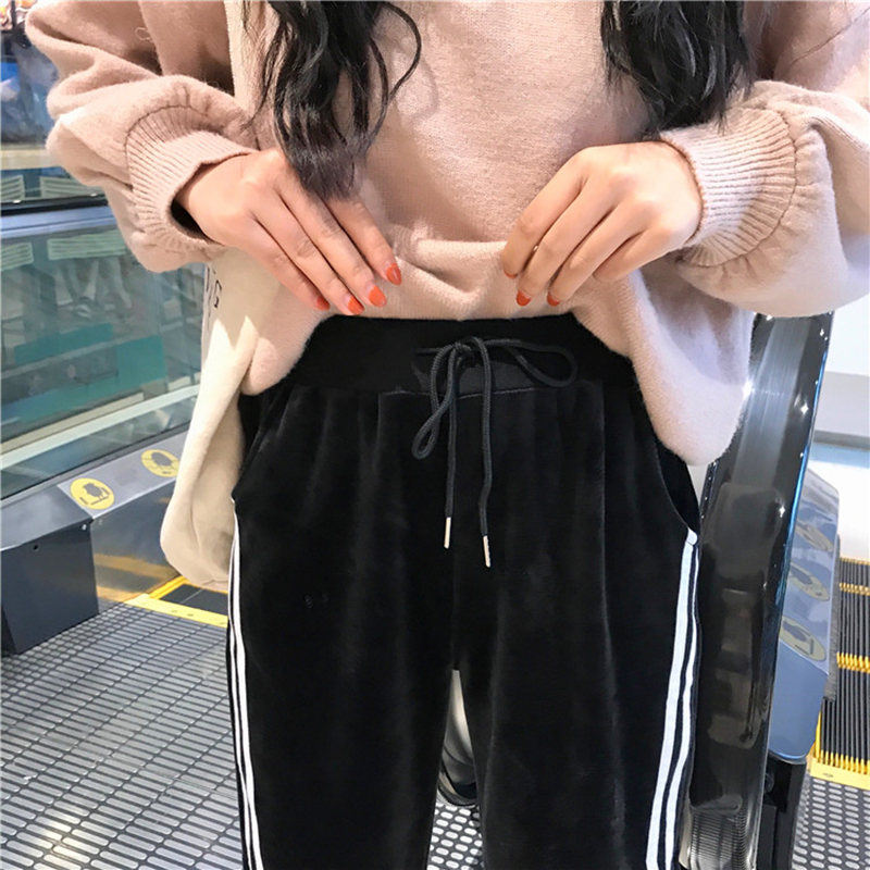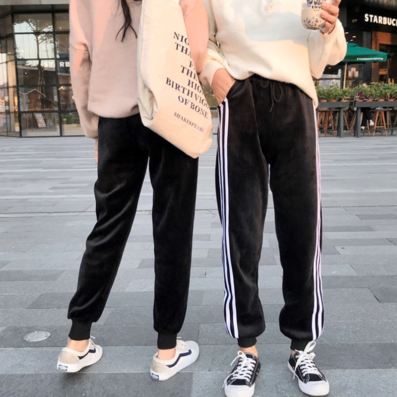 / 閨蜜裝運動褲女2018秋冬新款韓版加絨哈倫褲學生高腰寬松休閑長褲