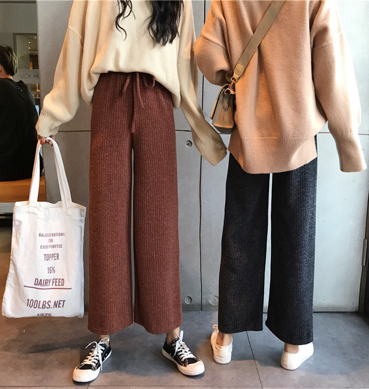 / 褲子女秋冬新款韓版時尚chic九分褲復古休閑寬松百搭直筒針織褲潮