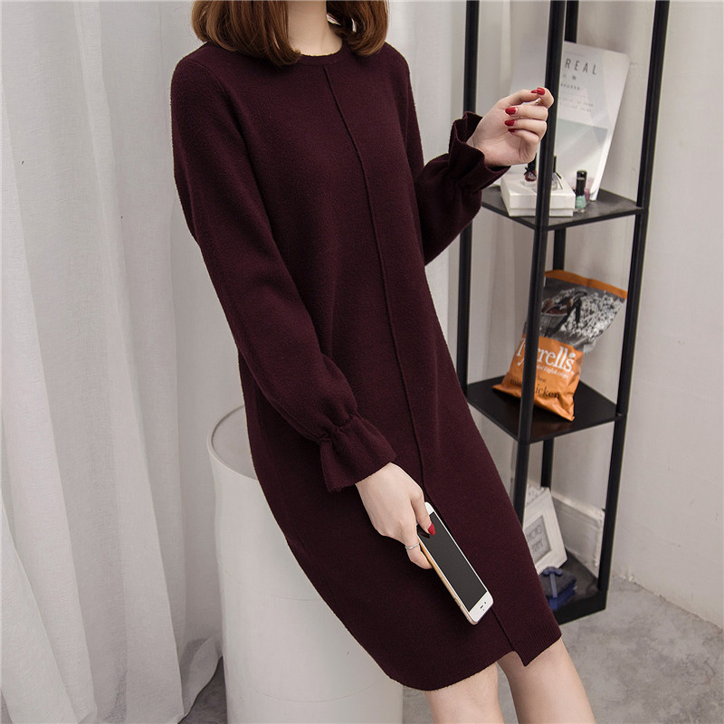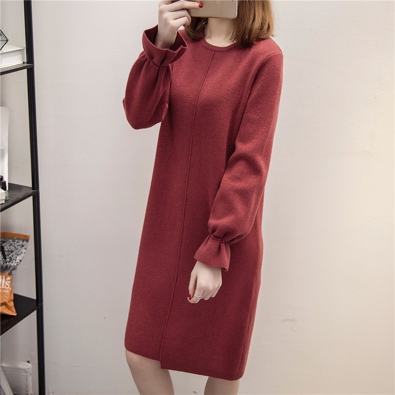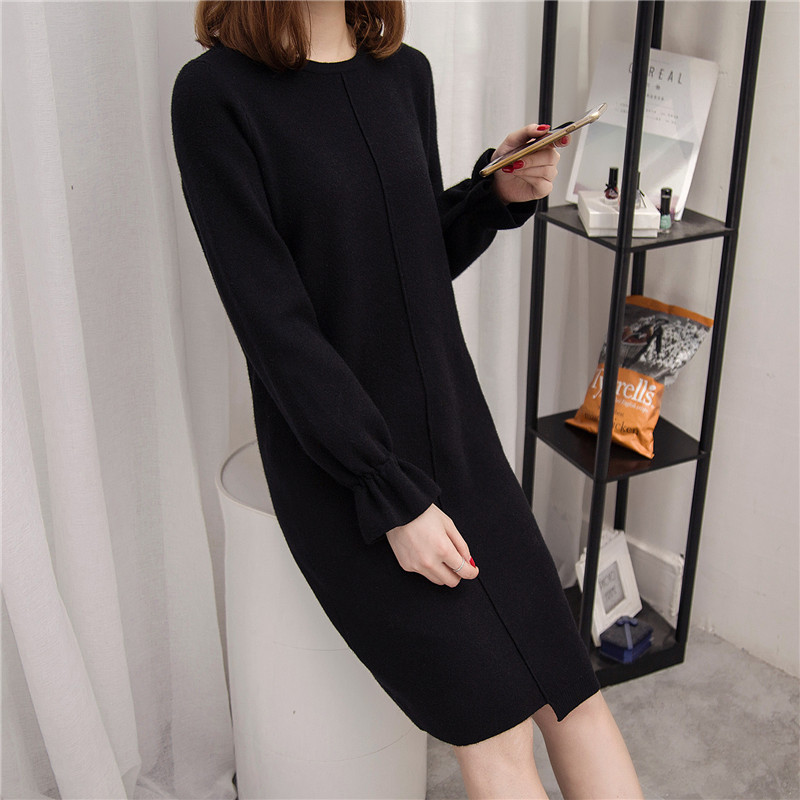 / 女裝冬裝新款潮韓版寬松中長款套頭毛衣裙女秋冬打底衫針織衫