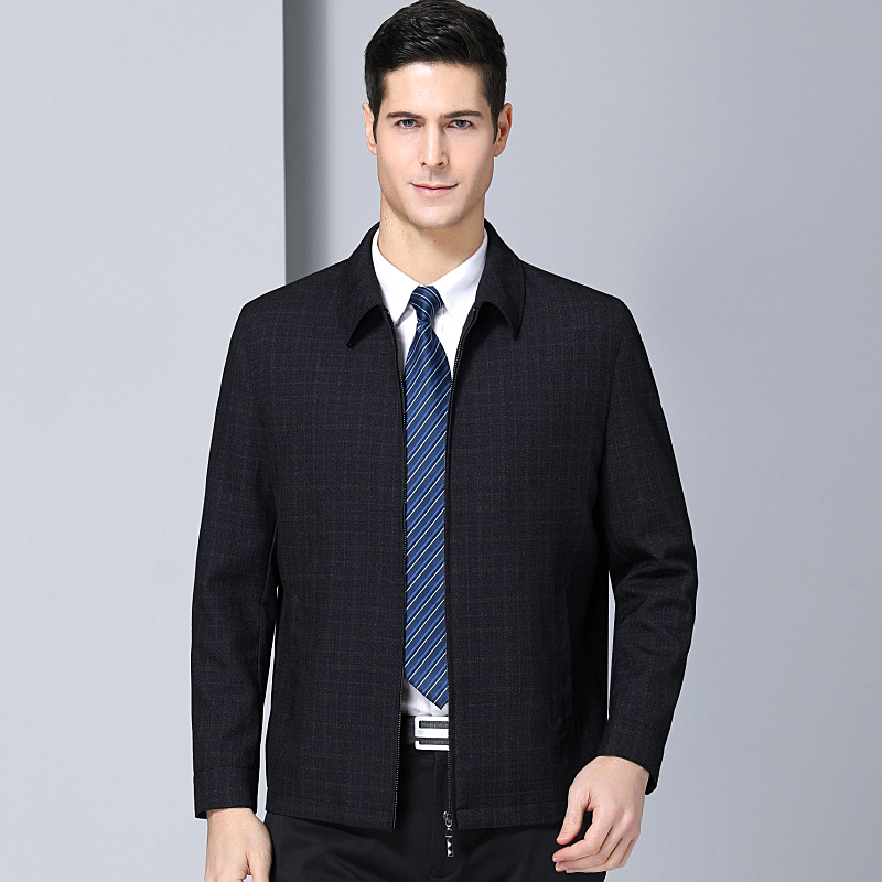 2018新款秋裝品牌中老年男士夾克衫商務休閑男裝翻領格子父親外套