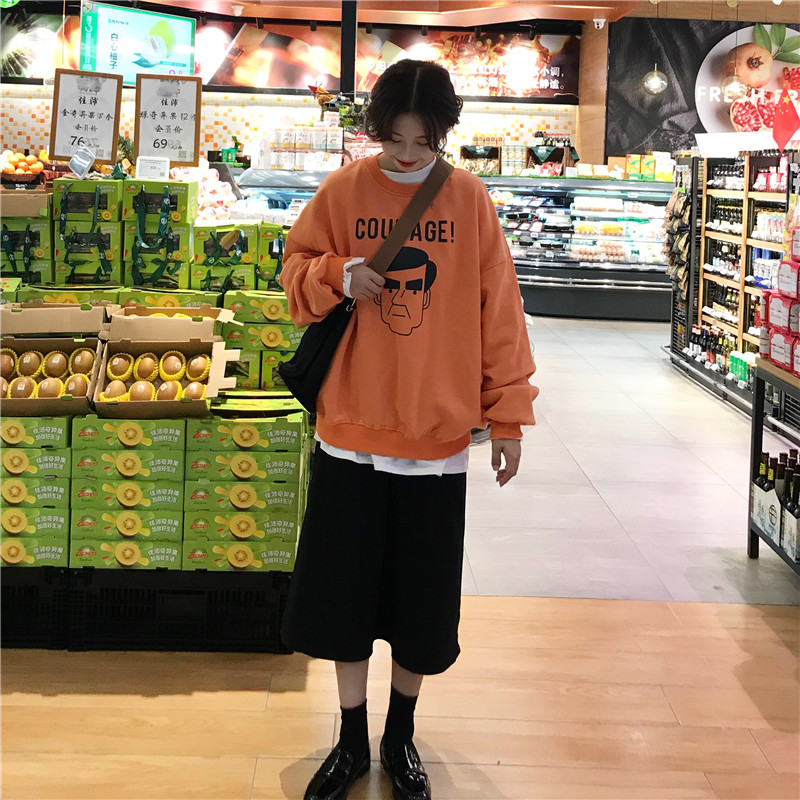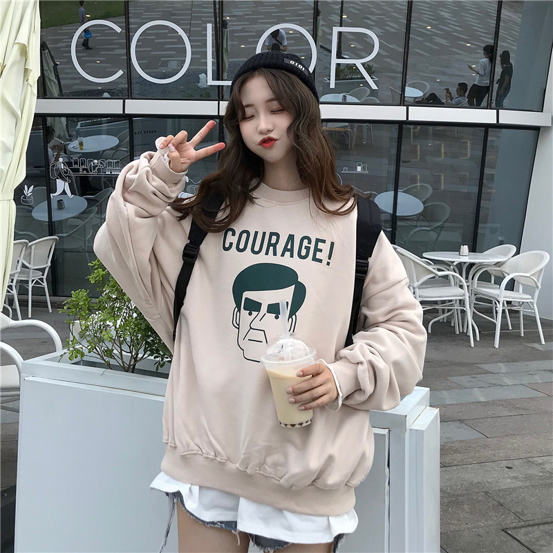 / 2018新款秋冬韓版寬松原宿風個性人物字母加絨加厚超火衛衣外套女