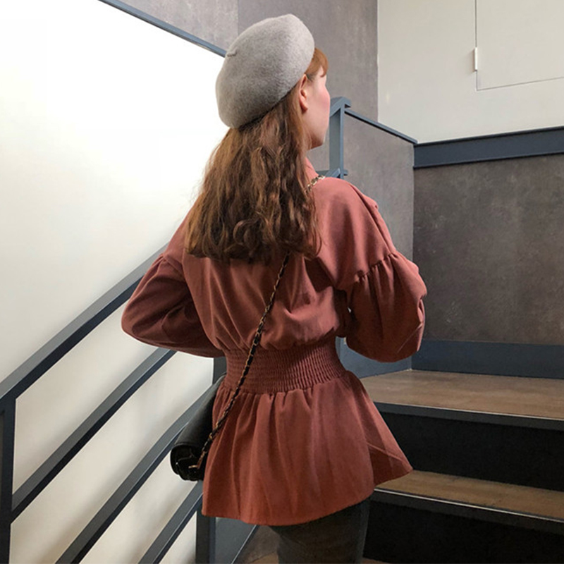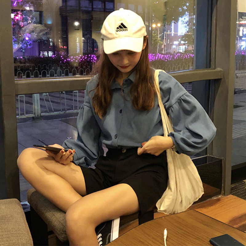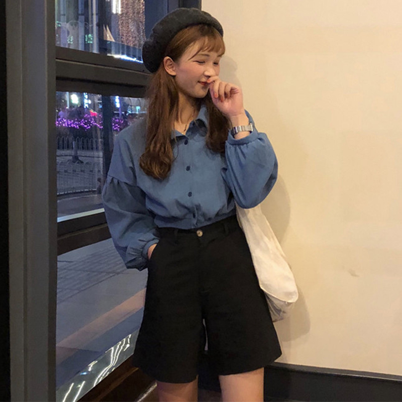 / 秋季女裝韓版氣質收腰顯瘦復古純色燈籠袖襯衫學生長袖襯衣上衣潮