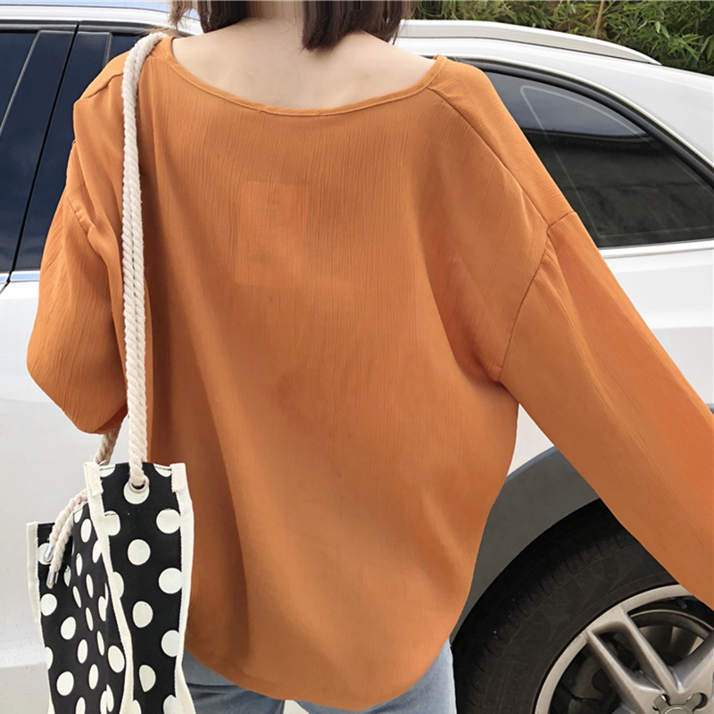 港風氣質polo衫早秋新款女裝時尚休閑寬松黑色襯衫V領長袖上衣潮