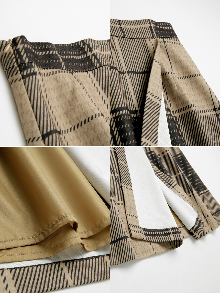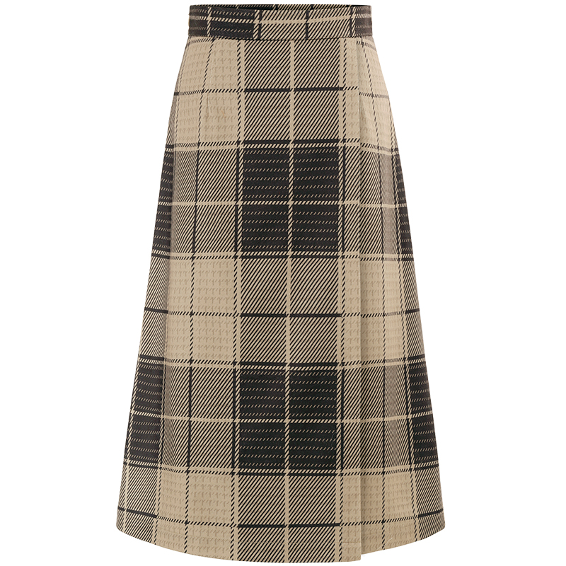 MG小象格子半身裙女中長款氣質秋冬新款港味復古chic高腰a字裙子
