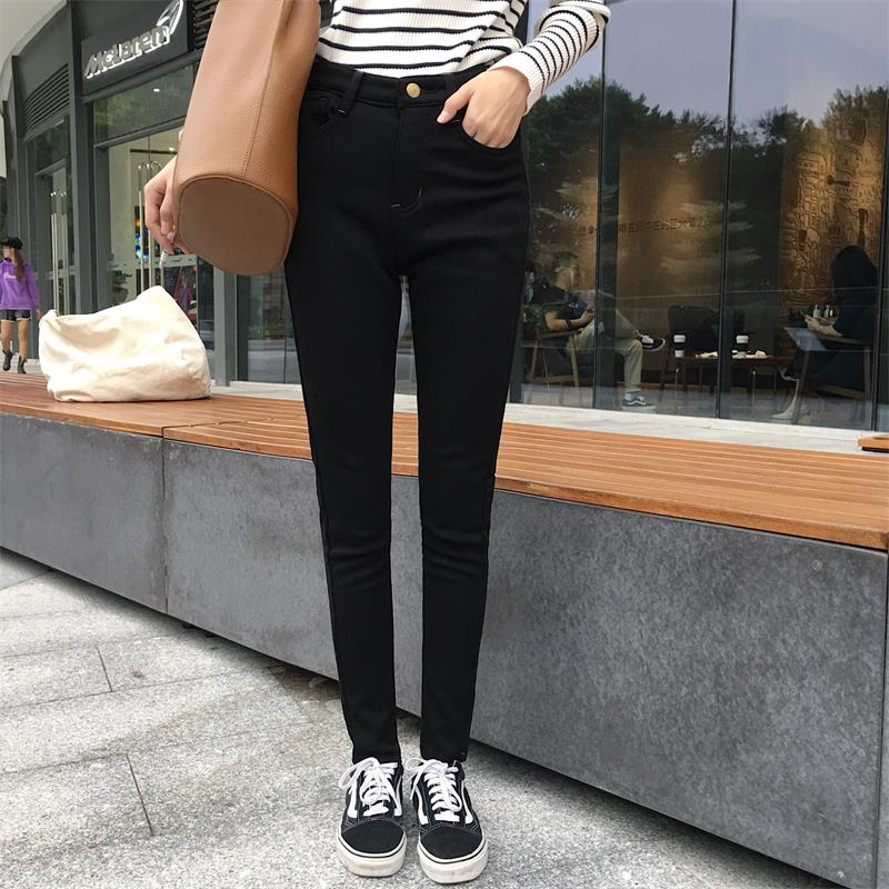 / 加絨彈力打底褲女秋冬裝2018新款韓版高腰修身小腳褲黑色顯瘦長褲