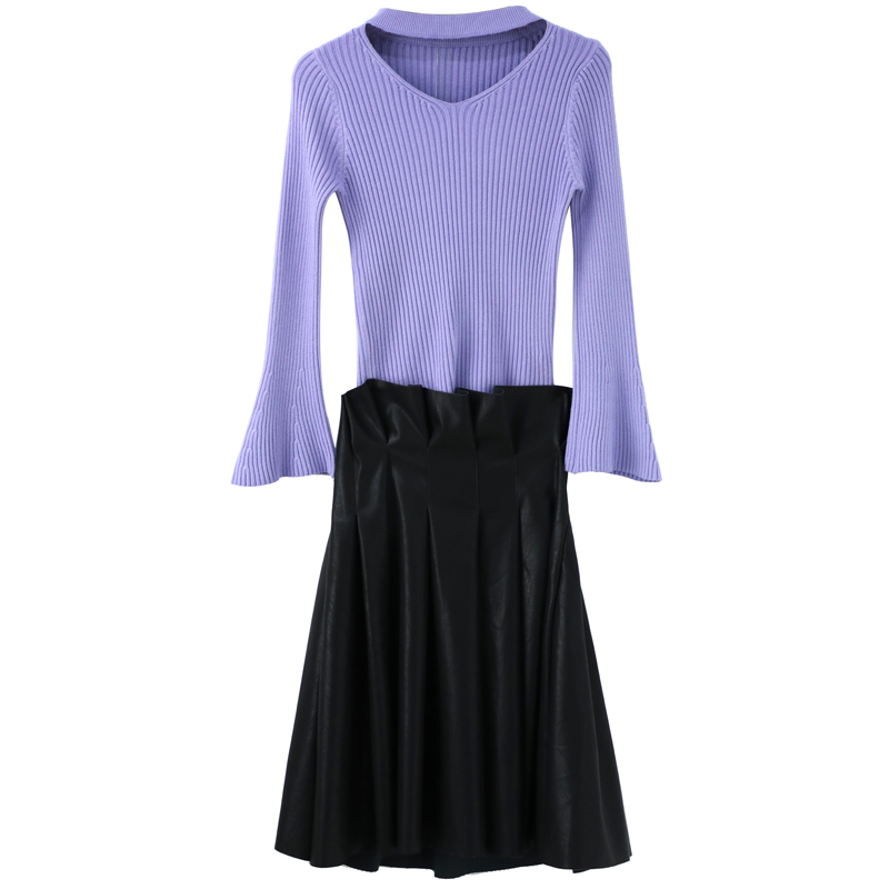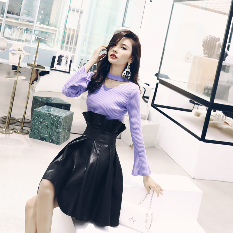 名媛氣質2018秋冬季高腰皮裙女針織打底衫網紅半身裙洋氣兩件套裝