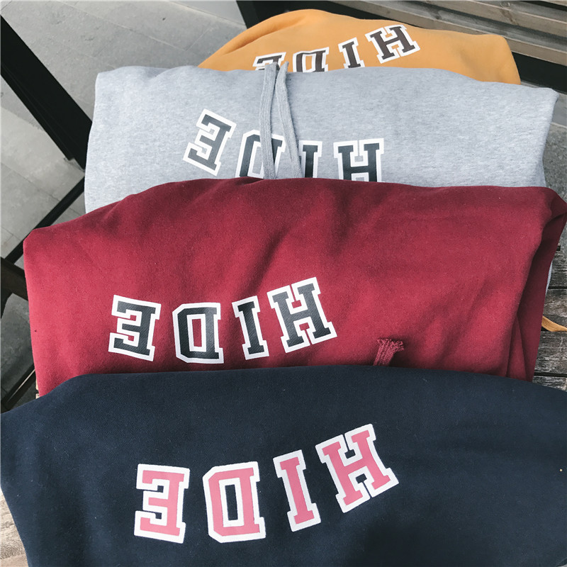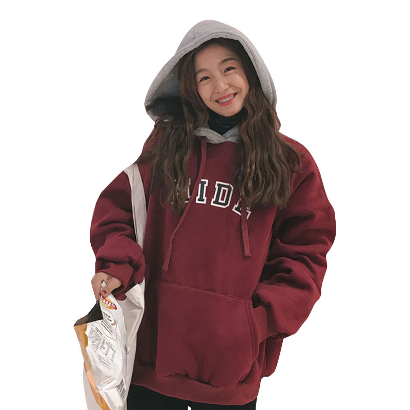 秋冬女裝韓版中長款慵懶風撞色雙層帽子字母寬松加厚加絨衛衣外套