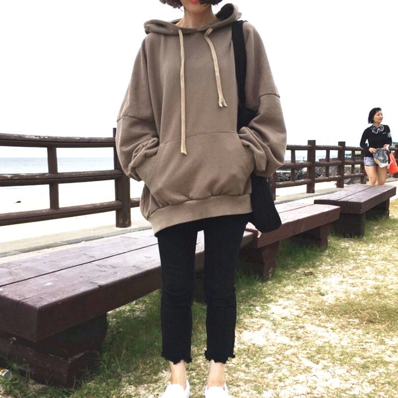 / 早秋兩件套女裝新款寬松長袖時尚連帽衛衣學生中長襯衫式連衣裙子