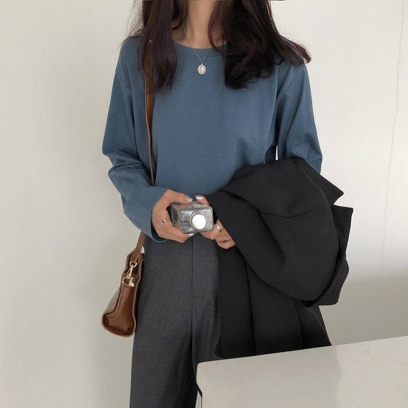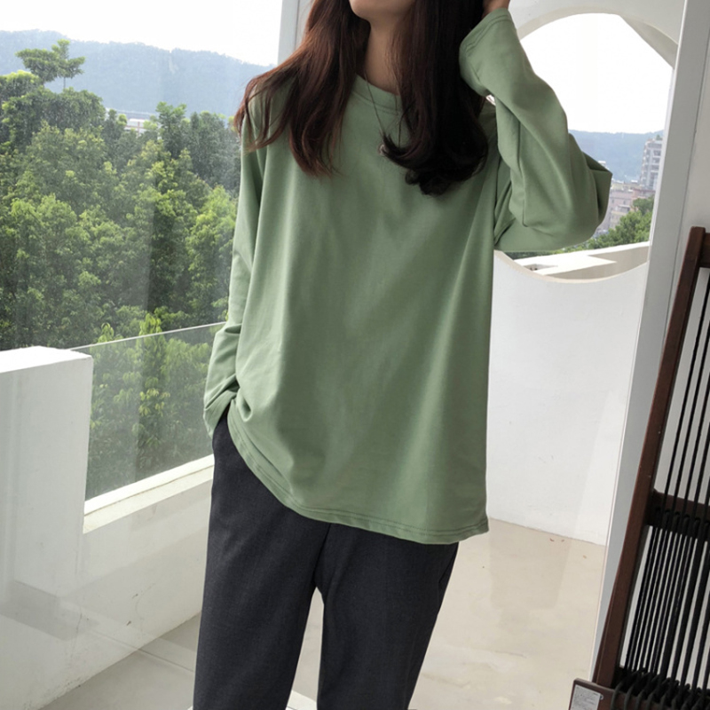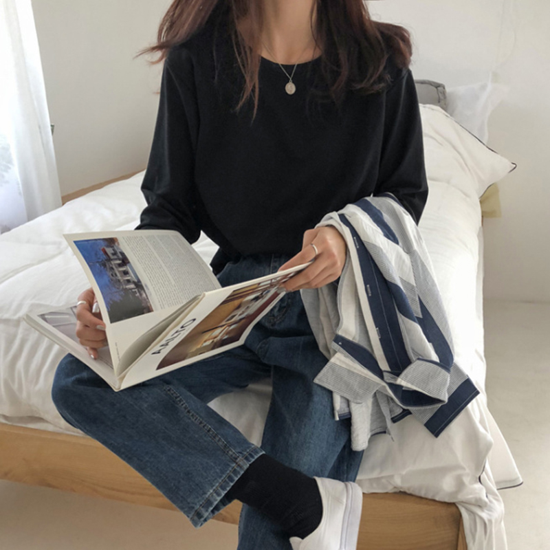 內搭打底衫秋裝女2018新款學生百搭長袖寬松顯瘦純色圓領T恤上衣
