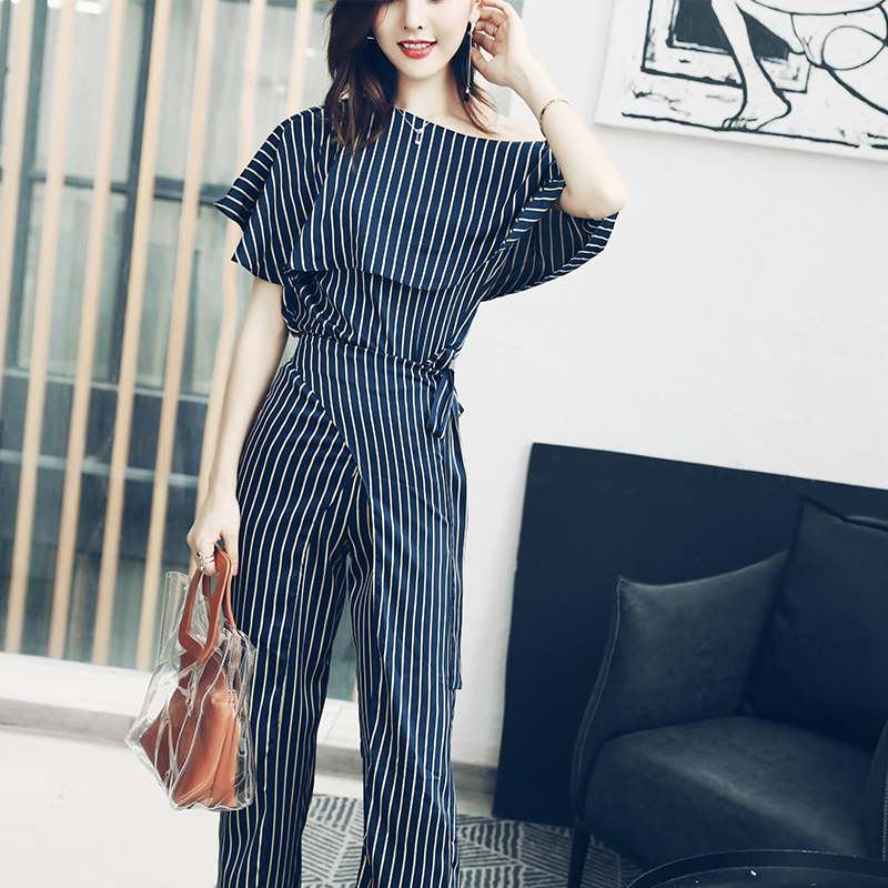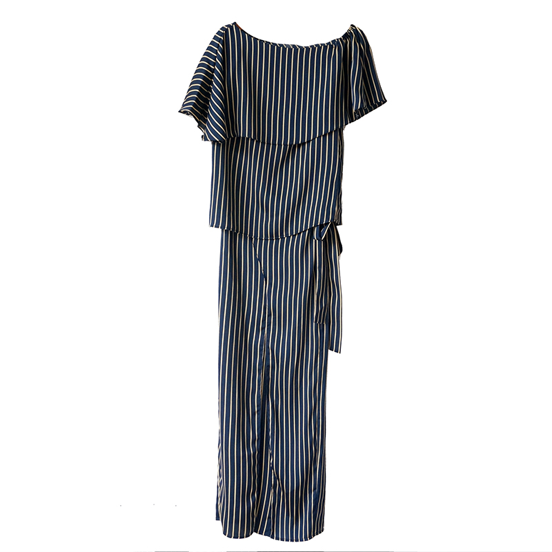 / 心機網紅韓版兩件套帥氣時髦社會女氣質條紋開叉闊腿褲套裝女